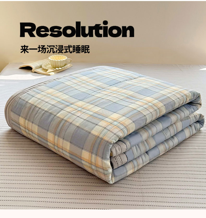 (总)栩裕纺织 2025新款小米格字母边提花大豆被透气被子被芯,白色