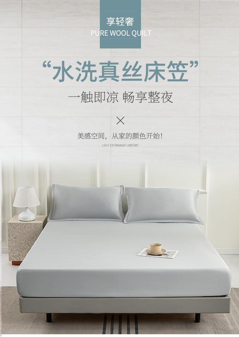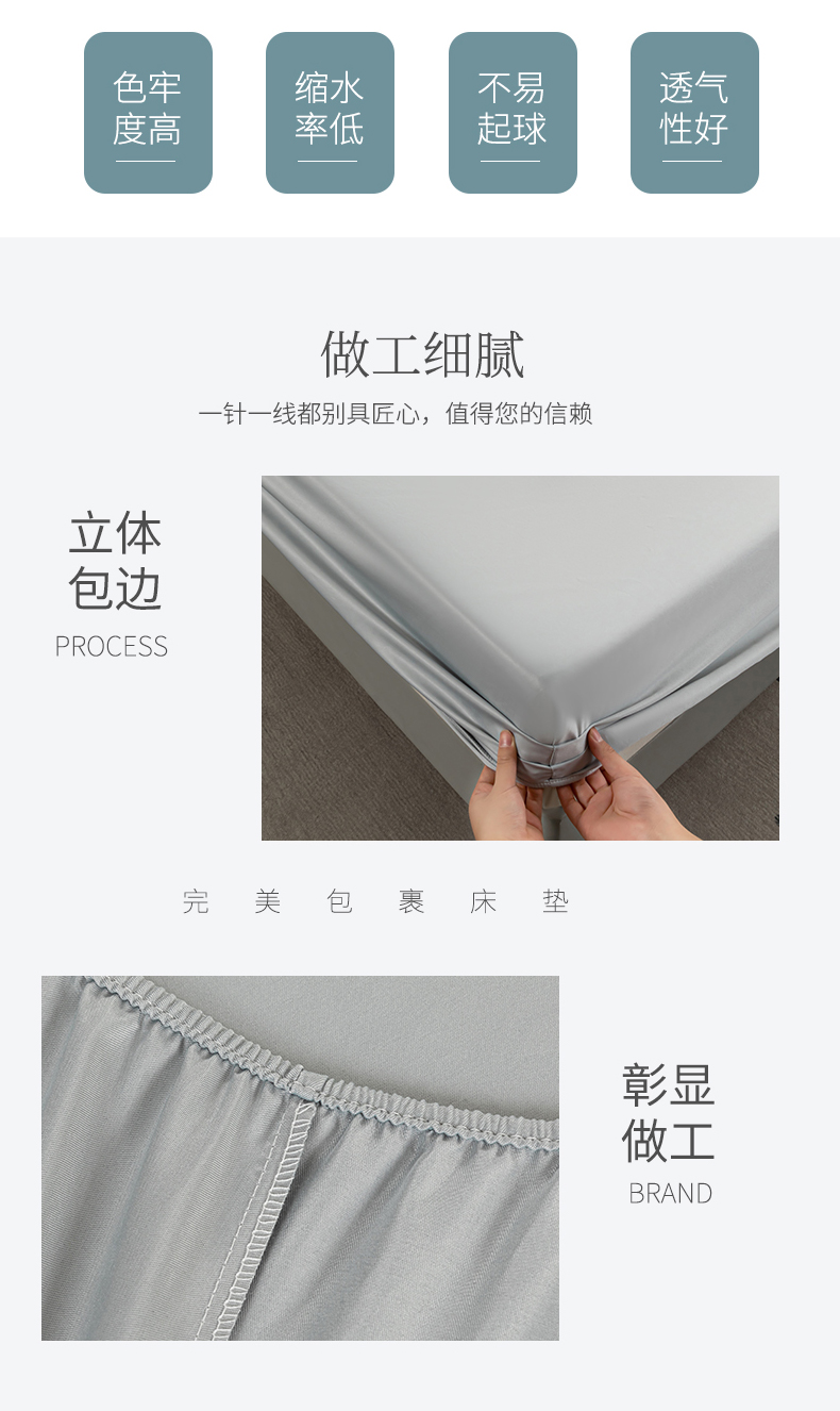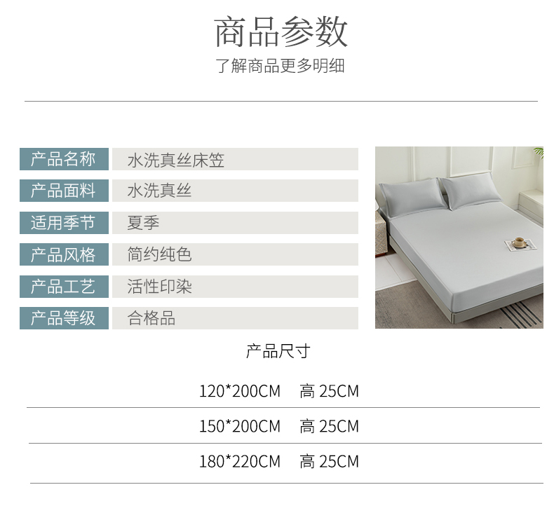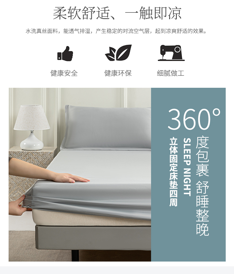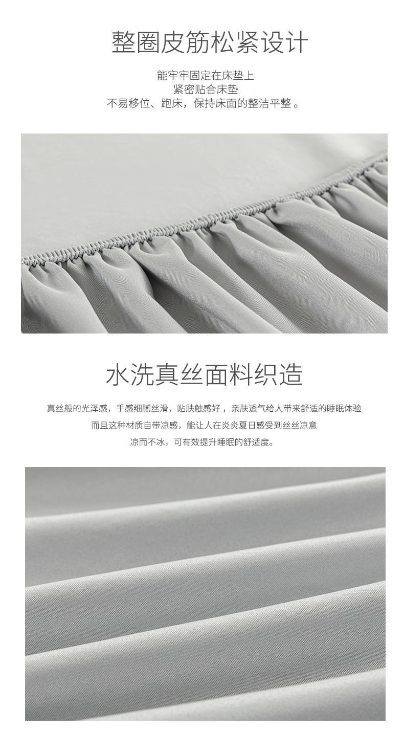 商品名称:潮邦创意家居 2025新款亲肤活性印染水洗真丝床垫凉席单床笠 岩石灰