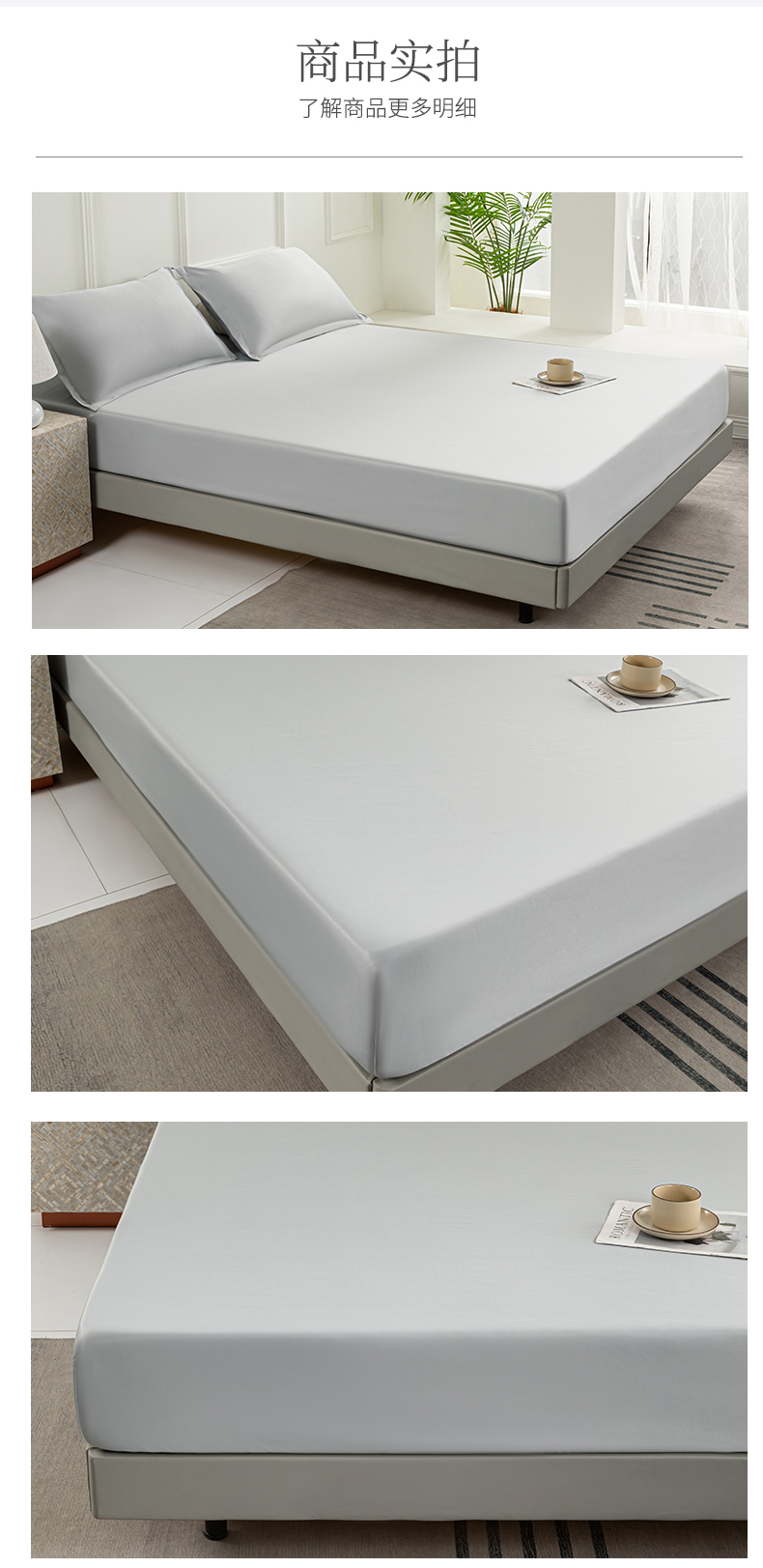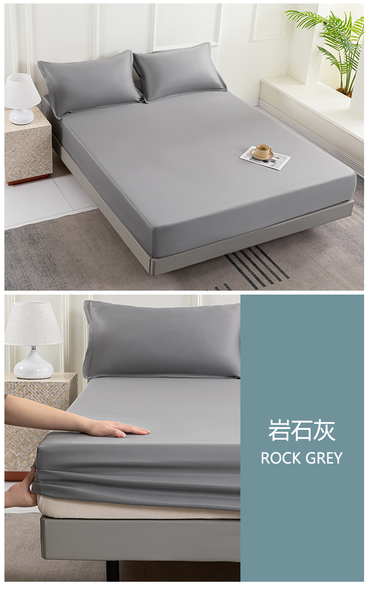 潮邦创意家居 2025新款亲肤活性印染水洗真丝床垫凉席单床笠 岩石灰
