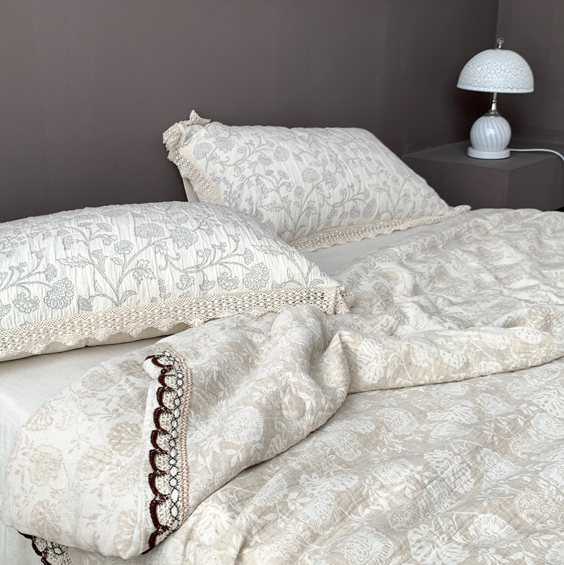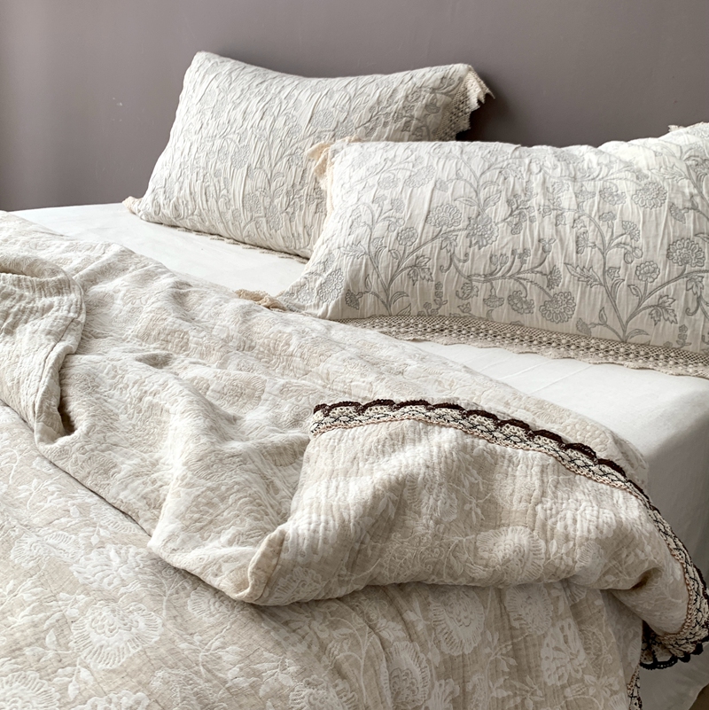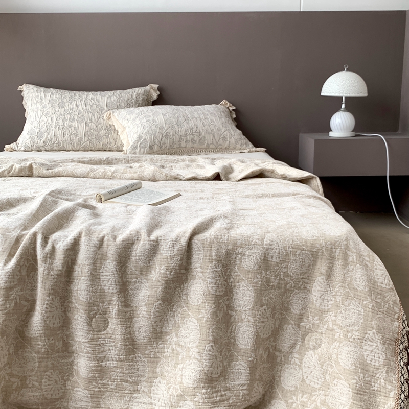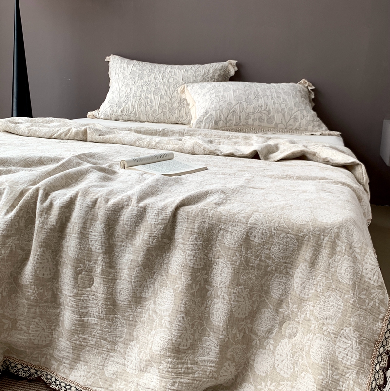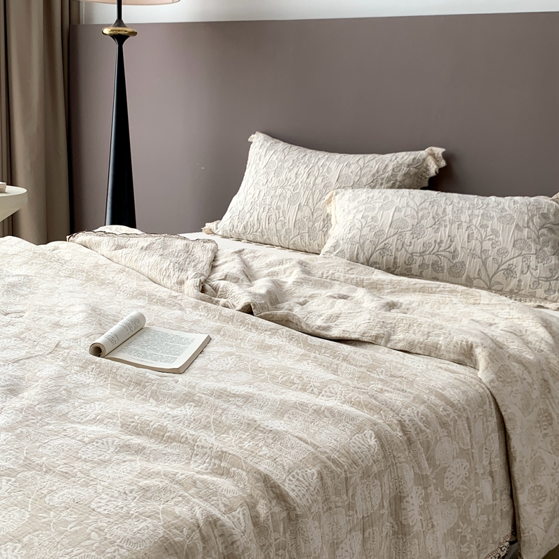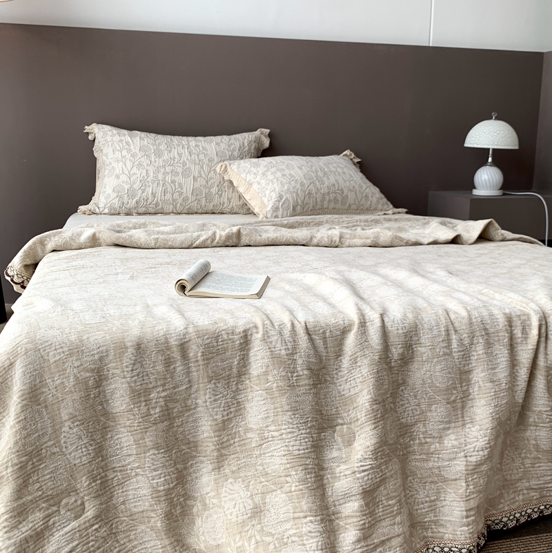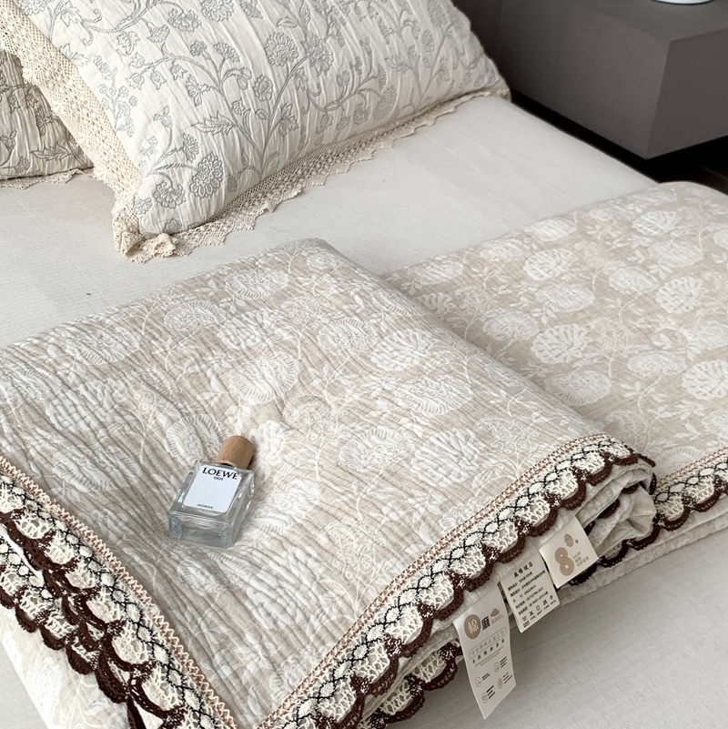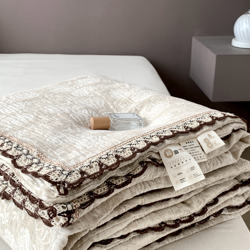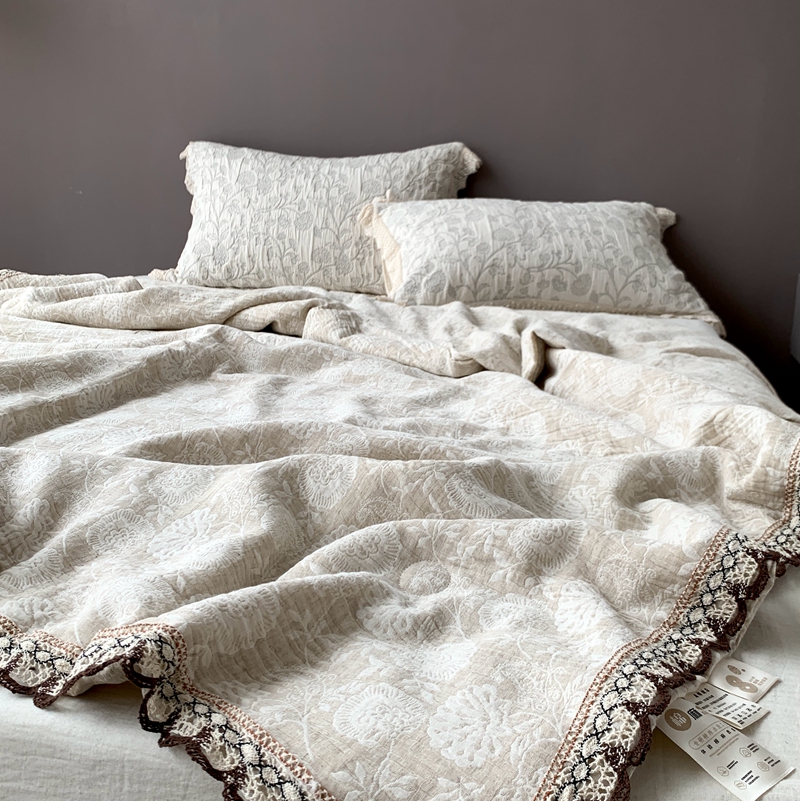 (总)凡客2025新款棉麻色织提花双层纱蚕丝棉夏被(镂空花边款)