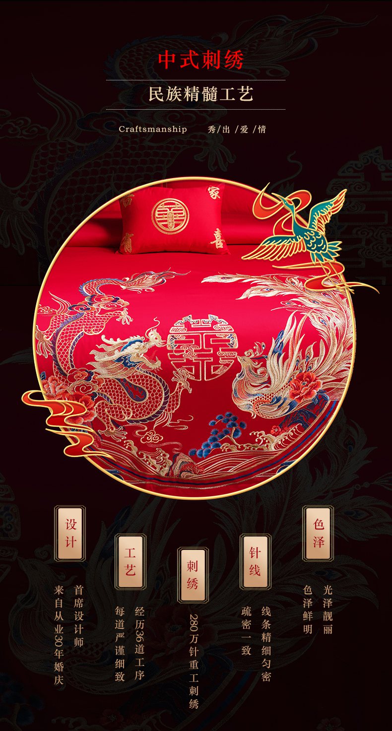当前位置: 91家纺网 > 商品网购 > 床品套件 > 四件套 > 婚庆四件套 > 洽想家 2025新款全棉新中式刺绣婚庆四件套多件套(控价销售最低不低于288元) 龙章凤彩