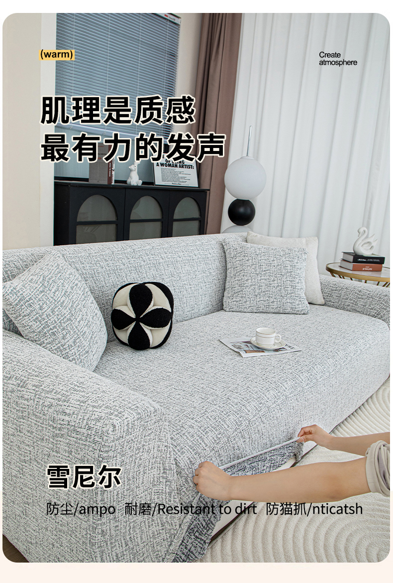 (总)沐沐家纺 2026新款雪花绒沙发笠,雪花绒-浅灰