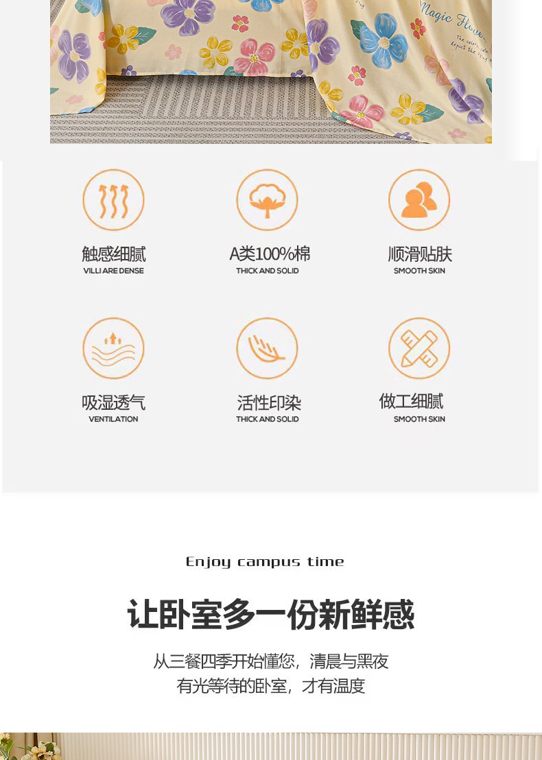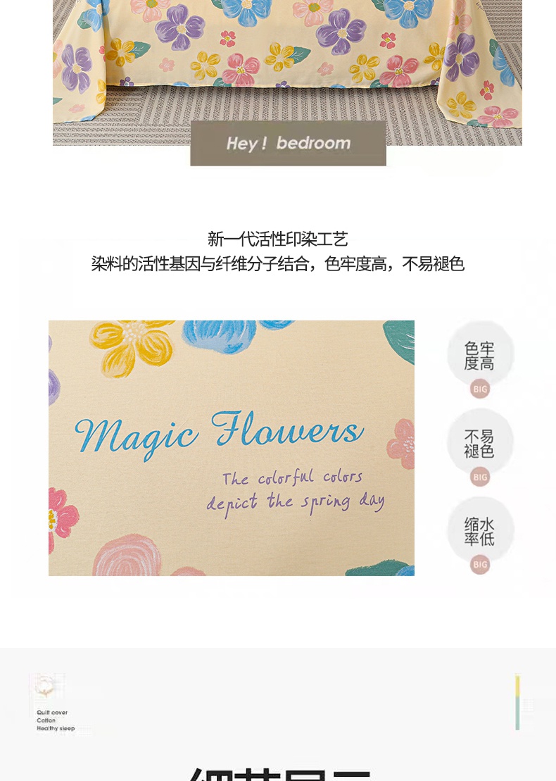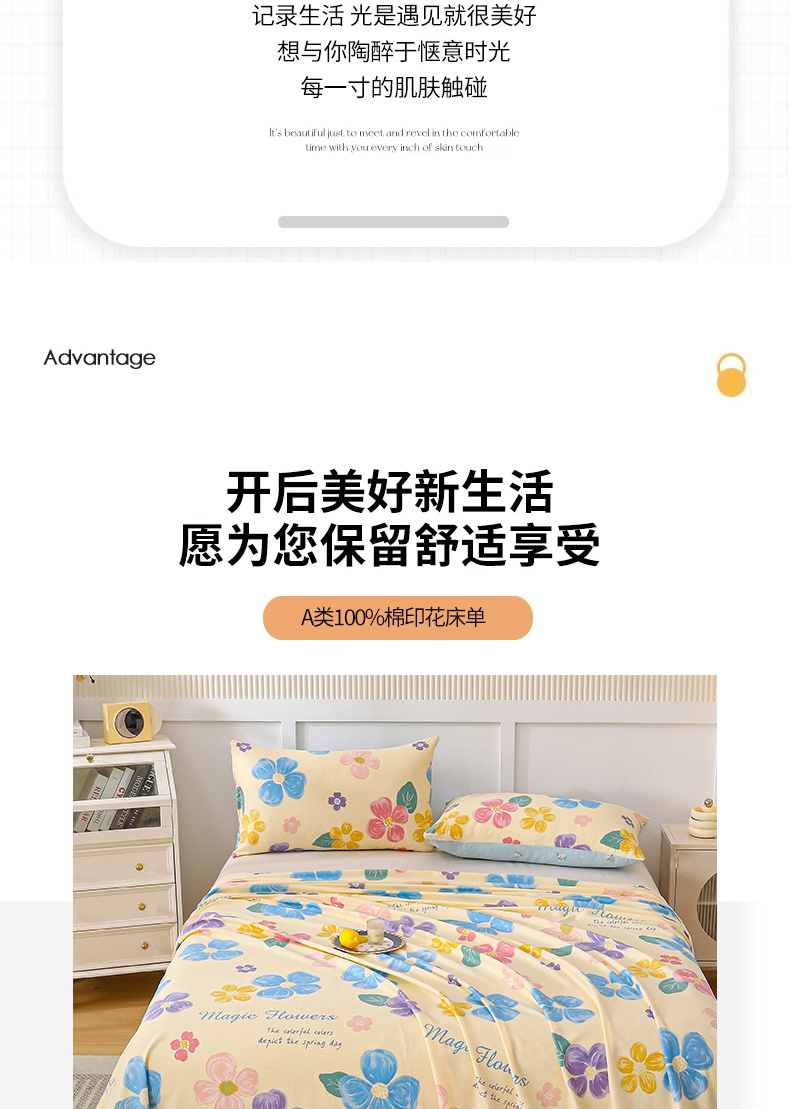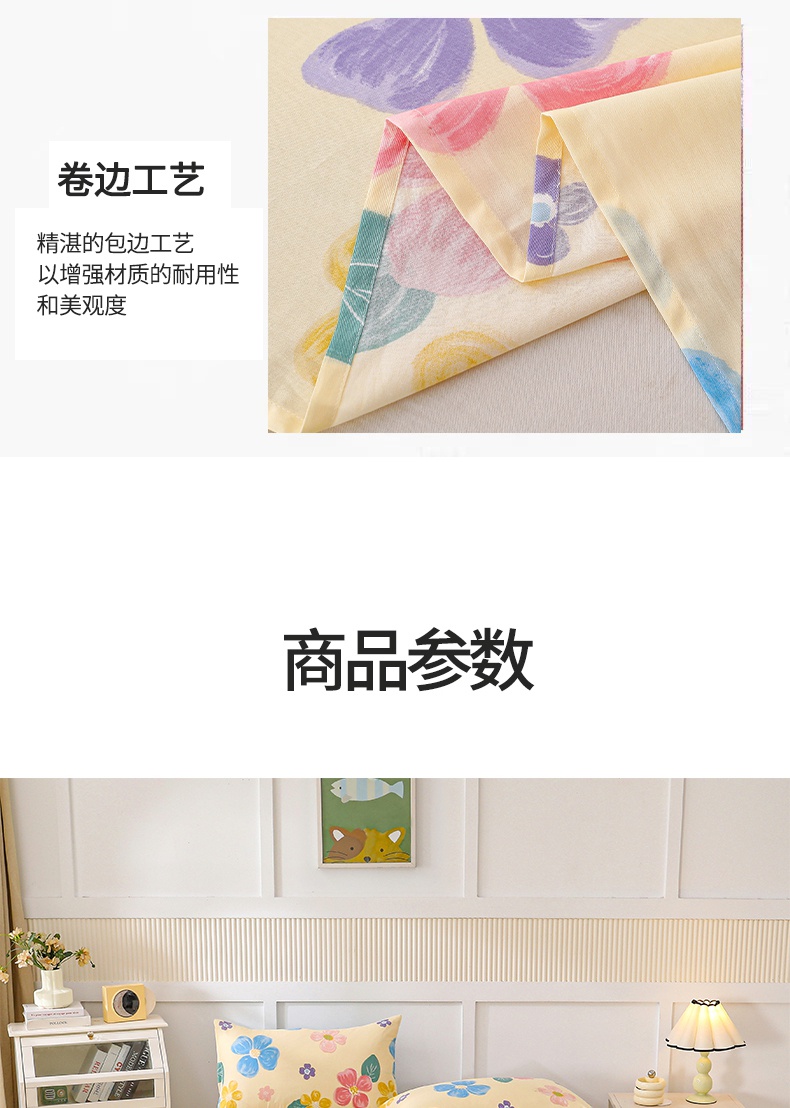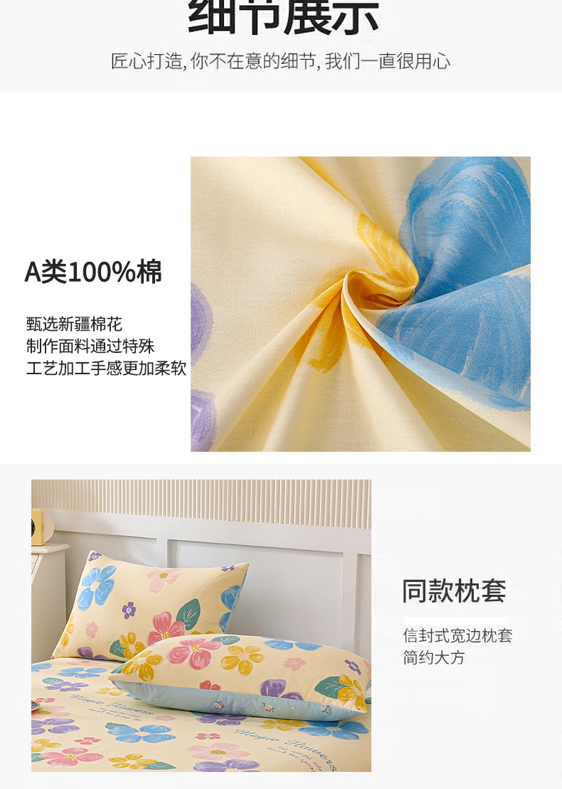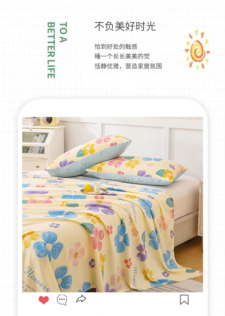 商品名称:宇彬家纺 2025直播新款13070全棉纯棉印花双人单床单枕套三件套喷气小清新简约学生被单 花屿芷