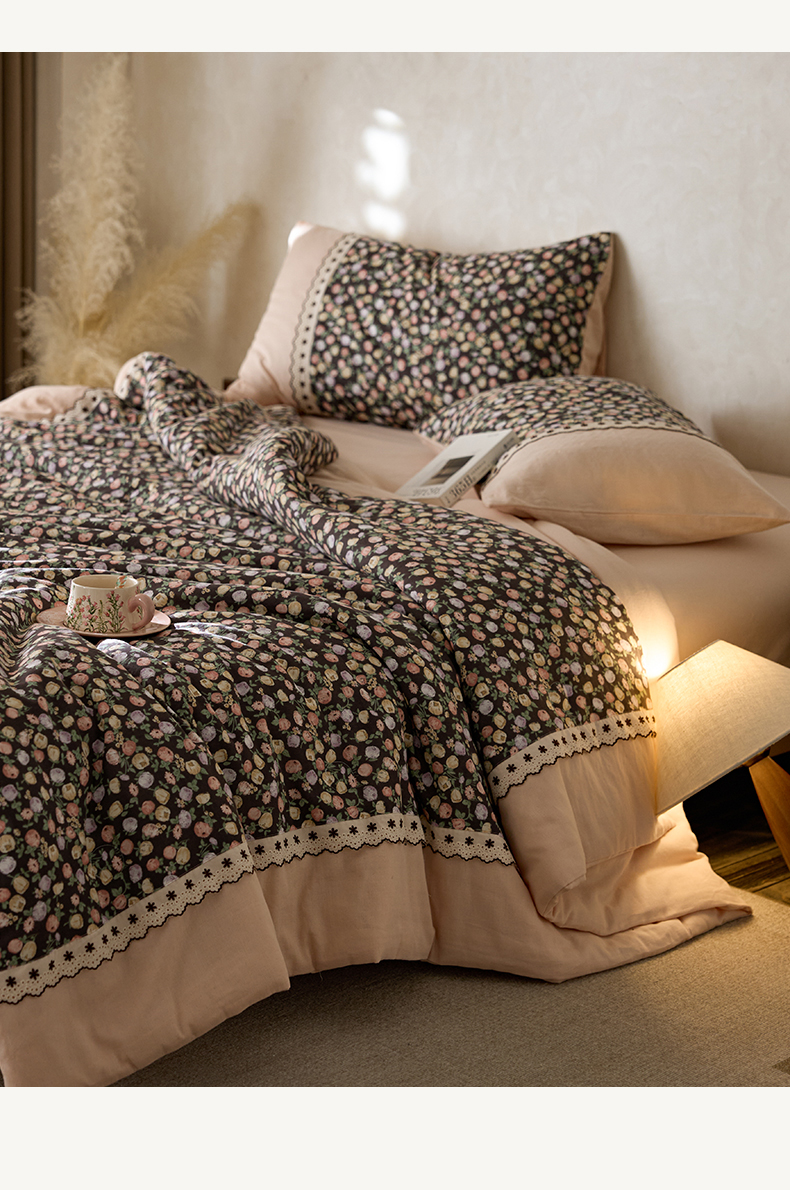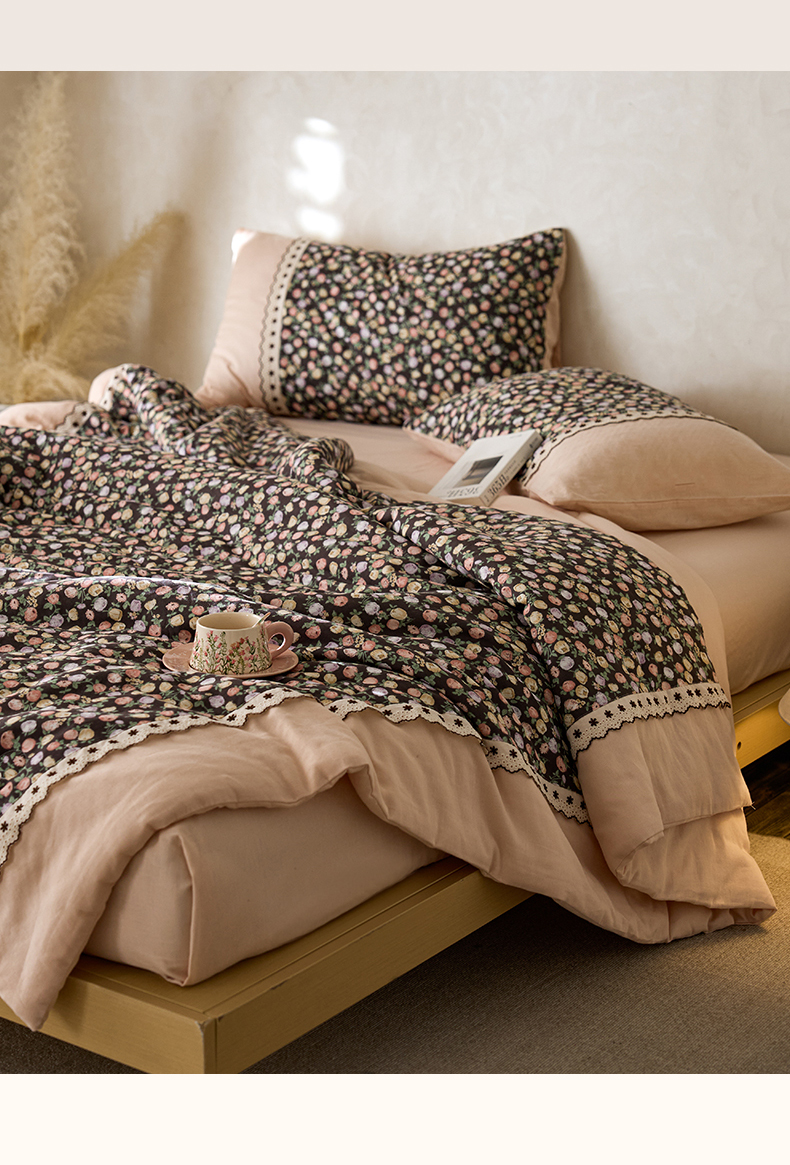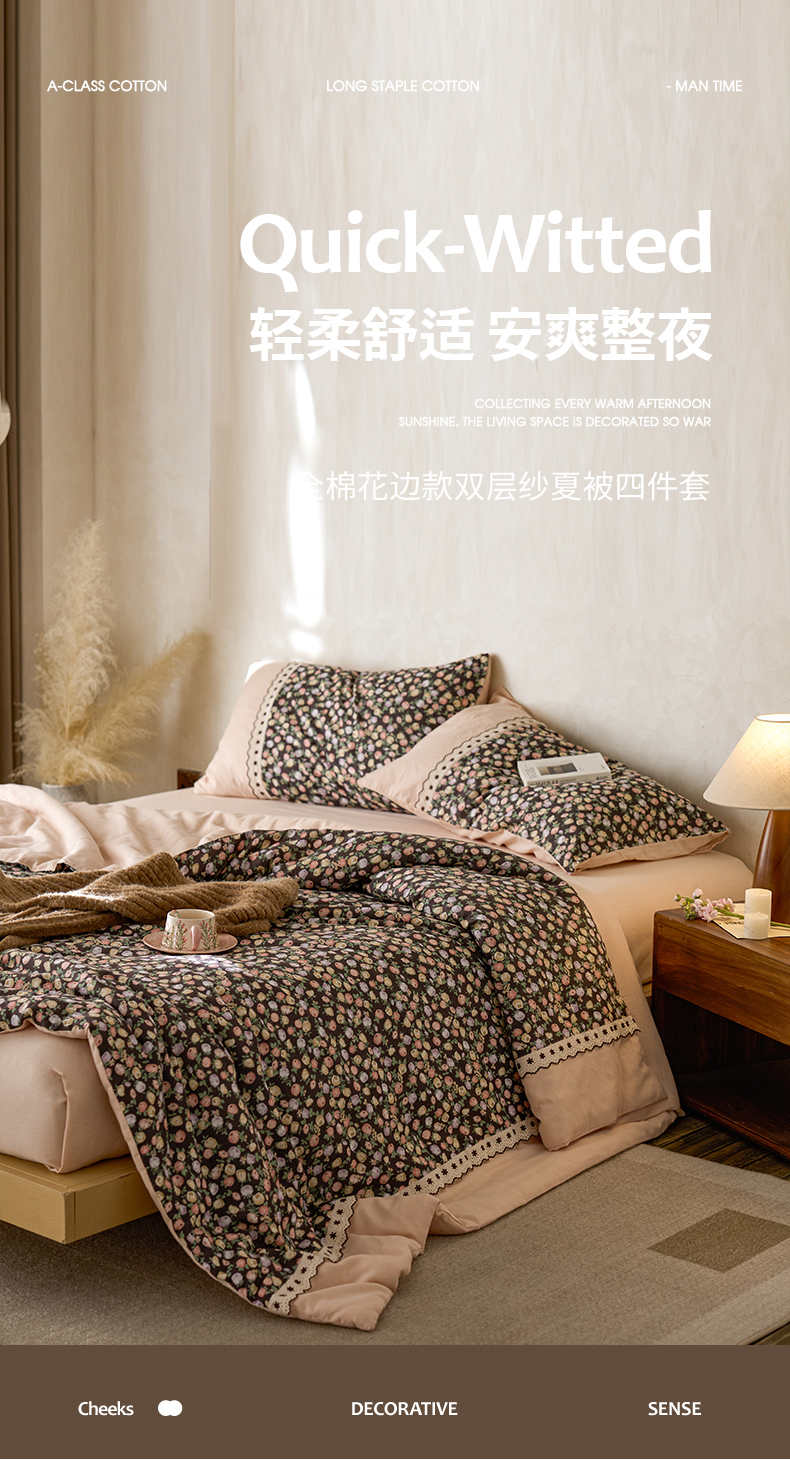 安莱生活 2025新款全棉纯棉双层纱复古花边款夏被夏凉被空调被四件套 慕锦