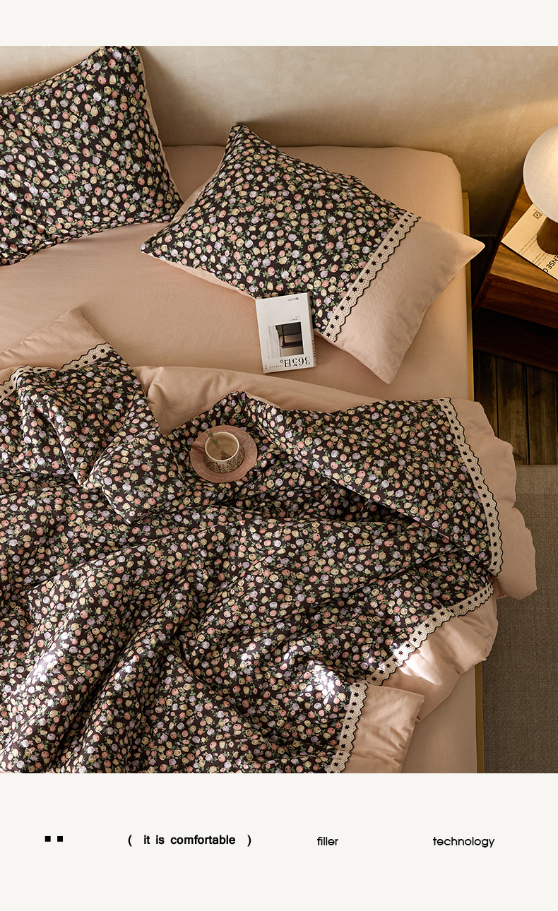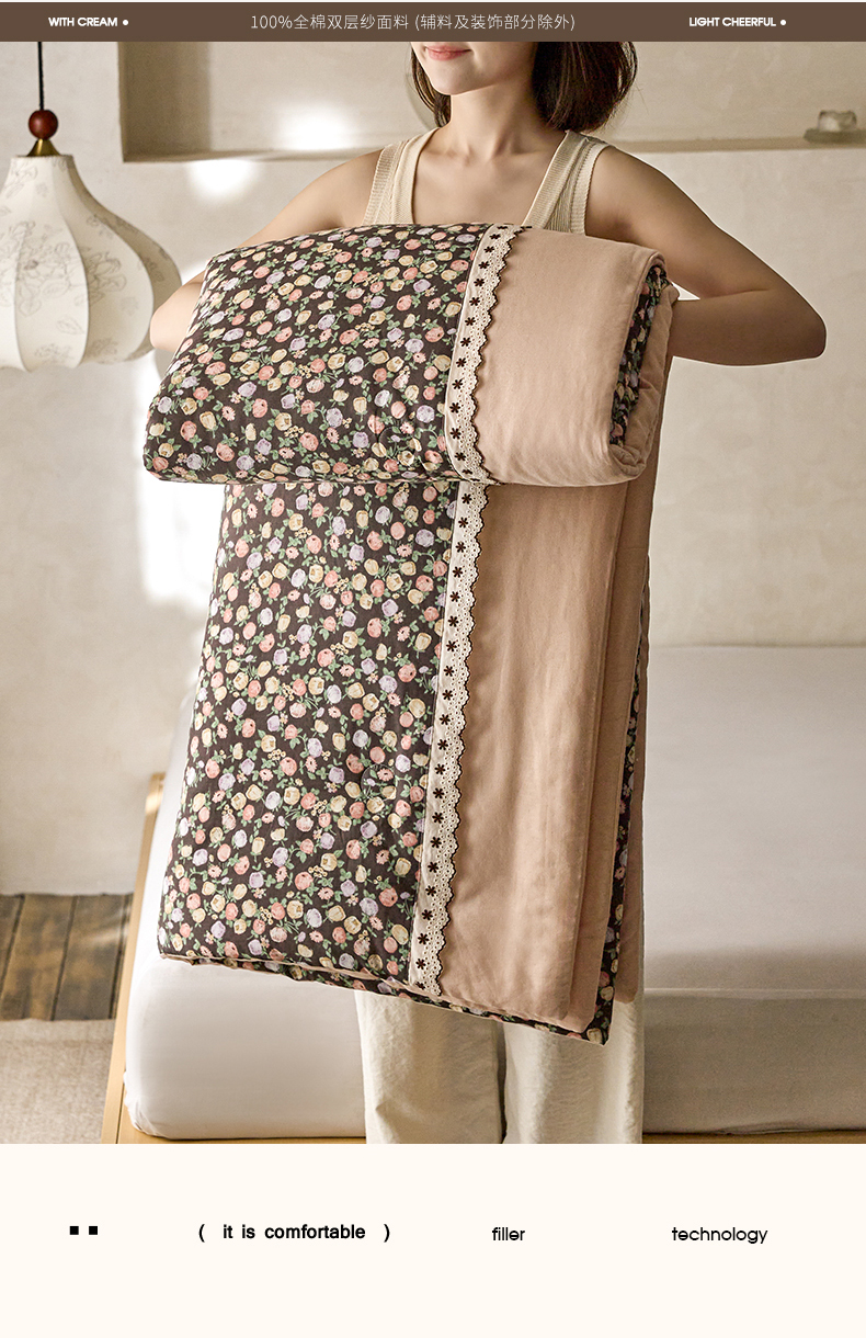 商品名称:安莱生活 2025新款全棉纯棉双层纱复古花边款夏被夏凉被空调被四件套 慕锦