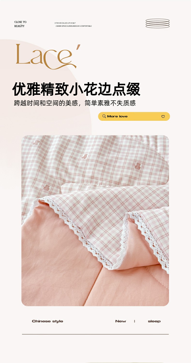 • 91家纺网 家纺一手货源 找家纺 仁凯家纺 2025新款A类针织棉双层纱100%新疆棉花花边夏凉被(包检测)(提供买家秀) 格调