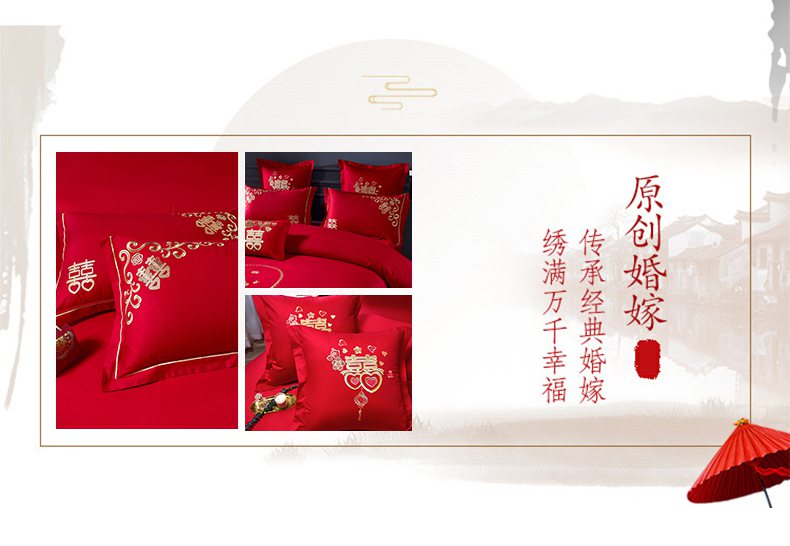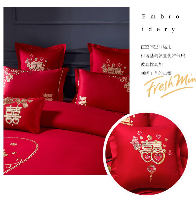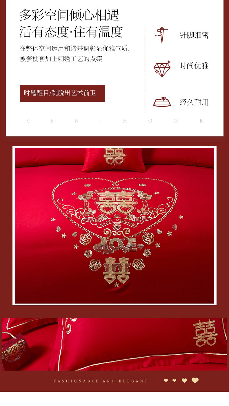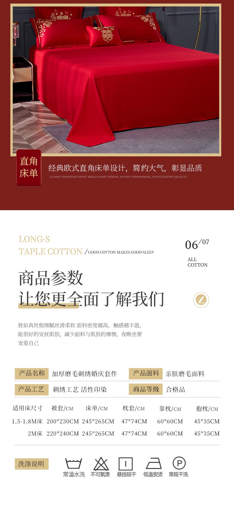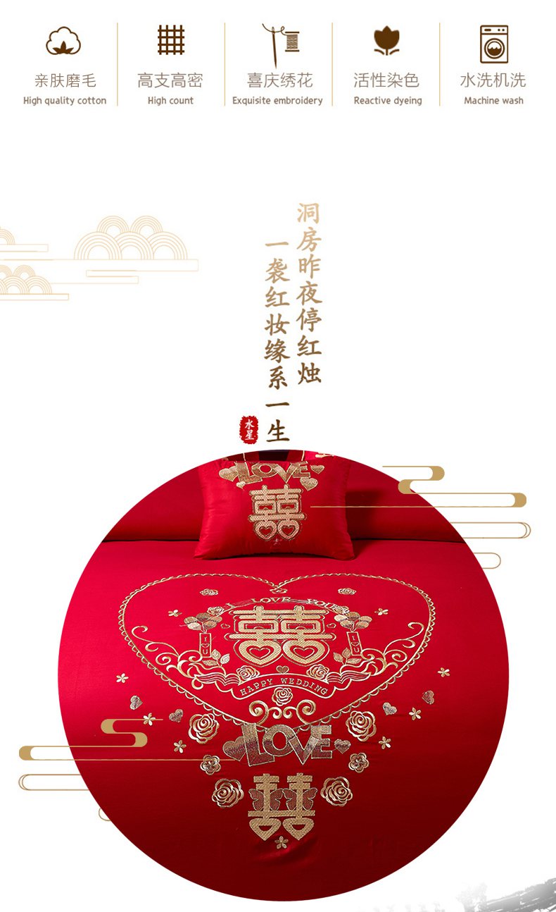 当前位置: 91家纺网 > 商品网购 > 床品套件 > 四件套 > 婚庆四件套 > 洽想家 2025新款亲肤棉磨毛刺绣婚庆四件套多件套 满心欢喜