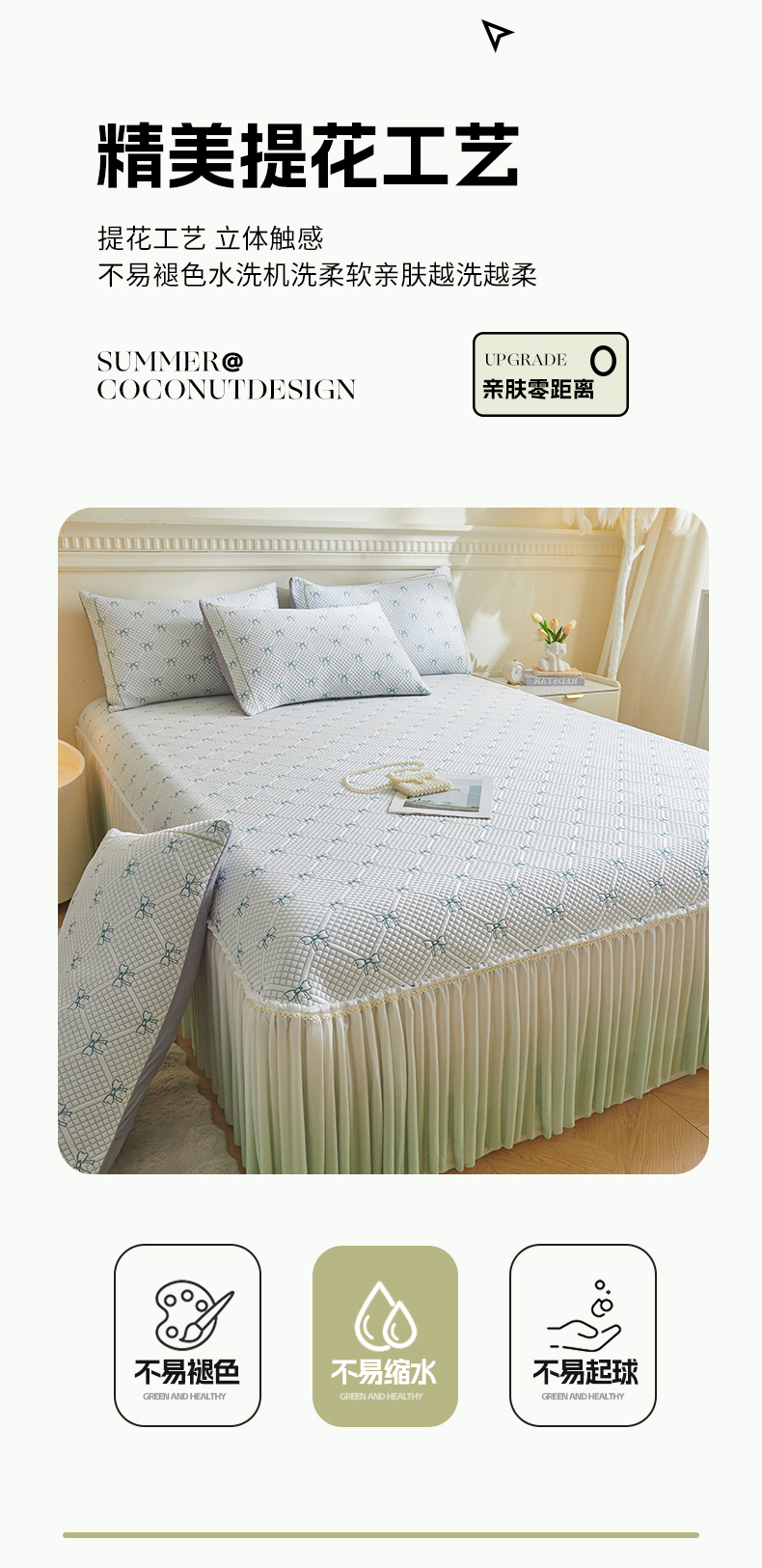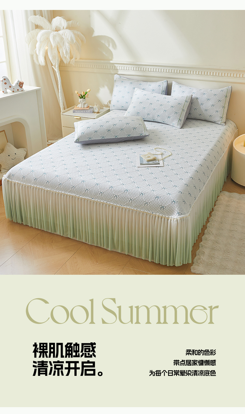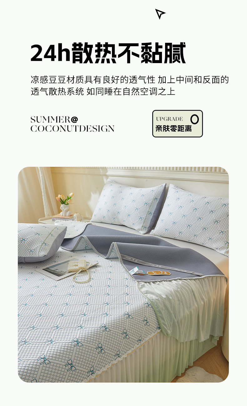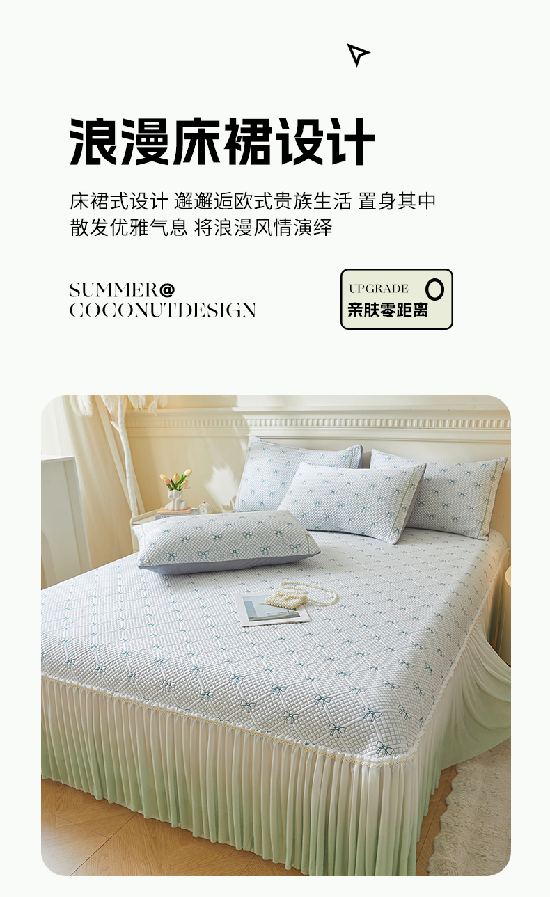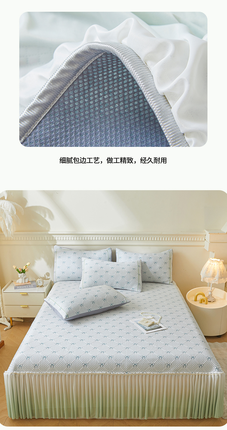 商品名称:罗艺轩 2025新款床裙款透气凉感豆豆软凉席席子 梦蝶-绿