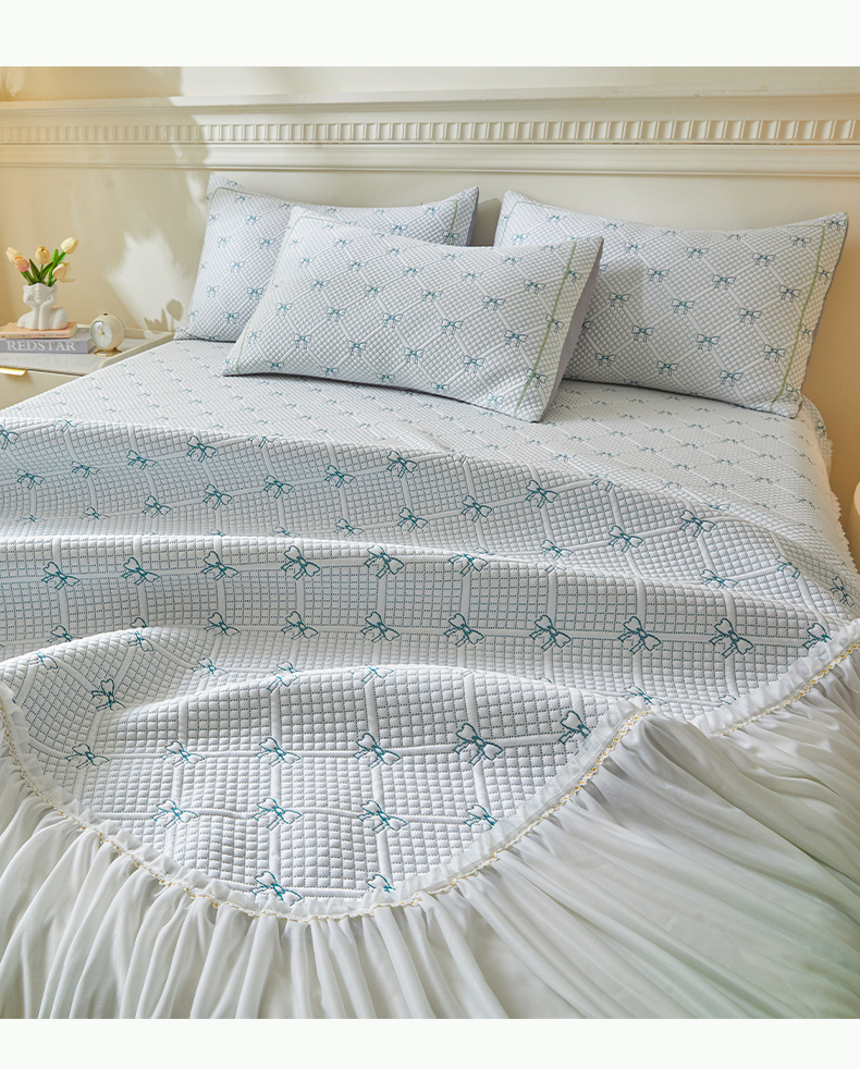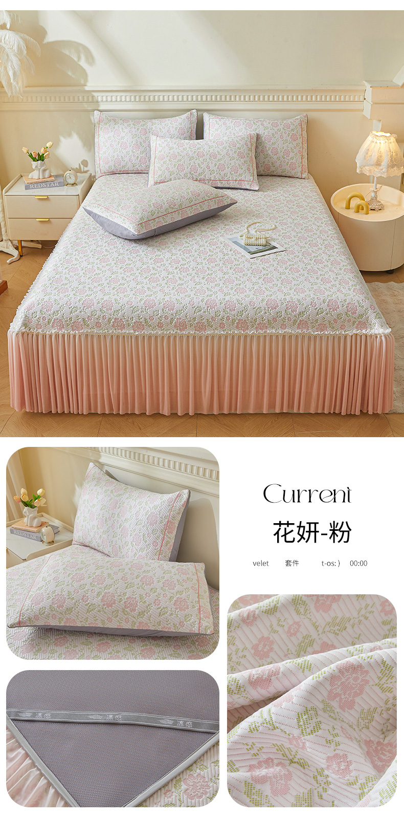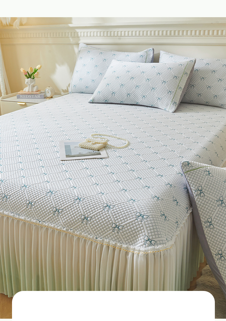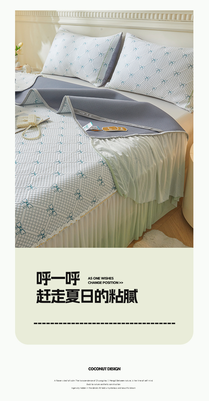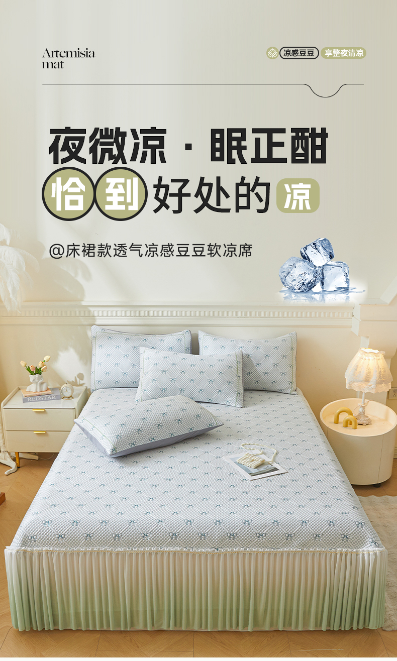 商品名称:罗艺轩 2025新款床裙款透气凉感豆豆软凉席席子 梦蝶-绿