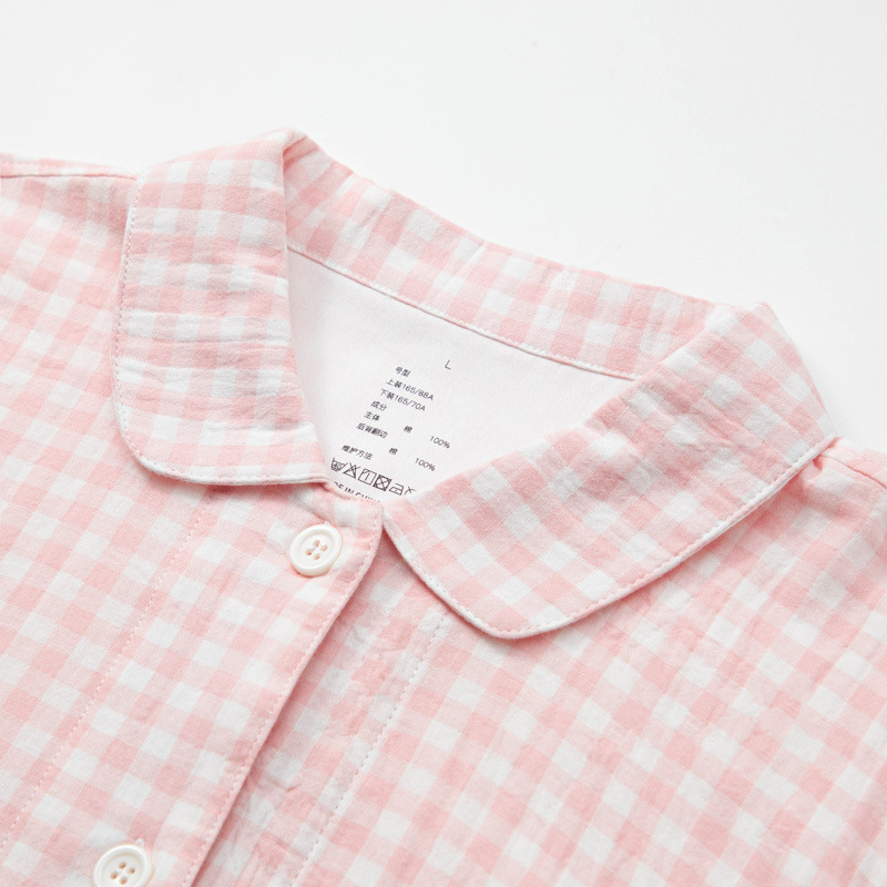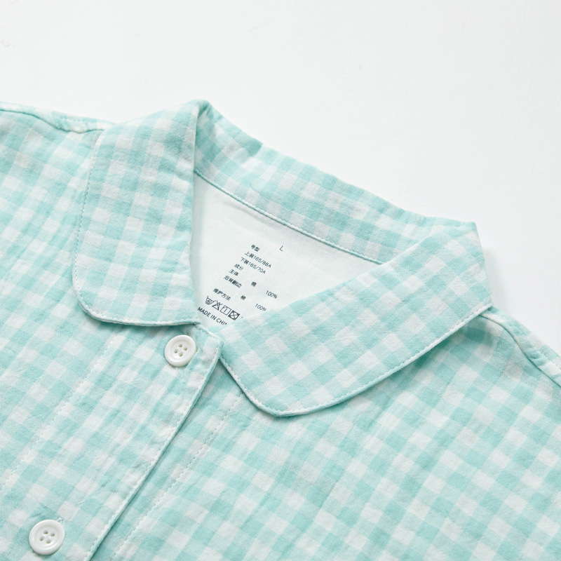 商品名称:良品汇馆 2025新款日式无印水洗全棉纯棉双层纱睡衣良品女纯棉短袖长裤棉夏季情侣家居服 男款糖果蓝短袖