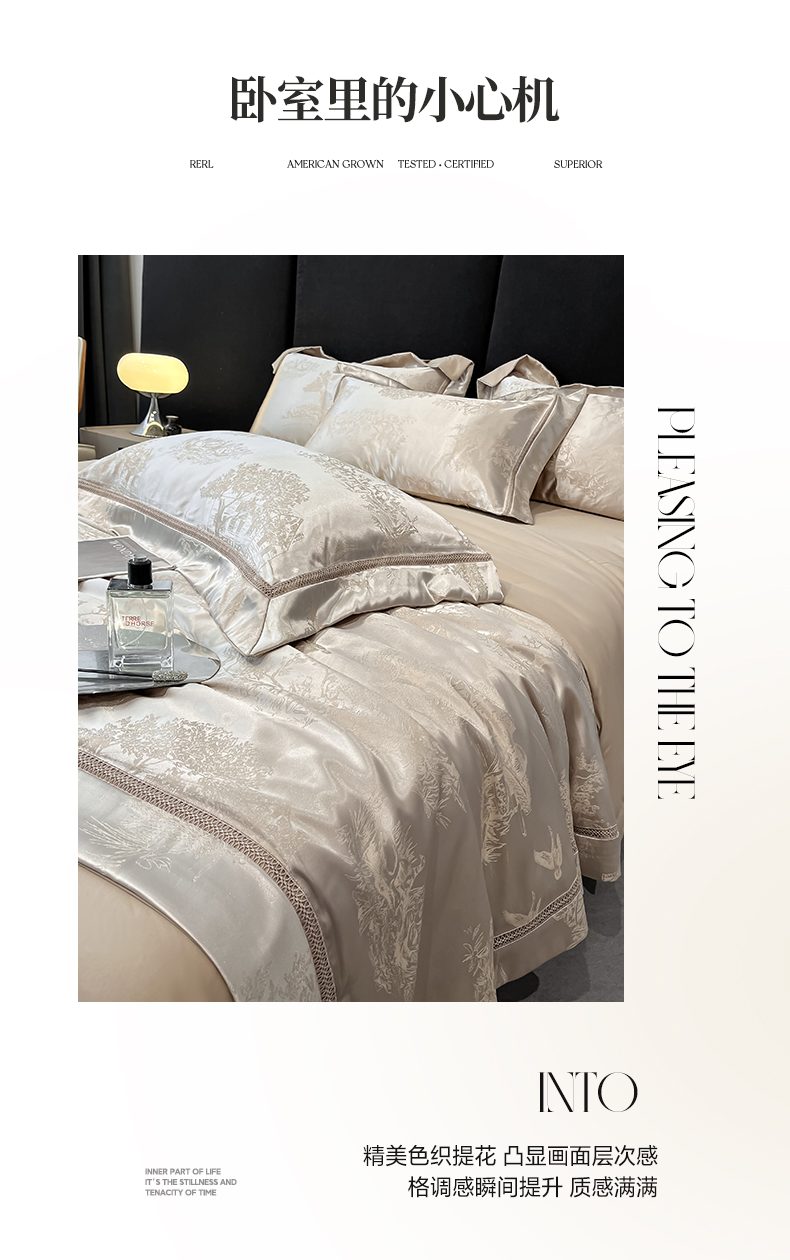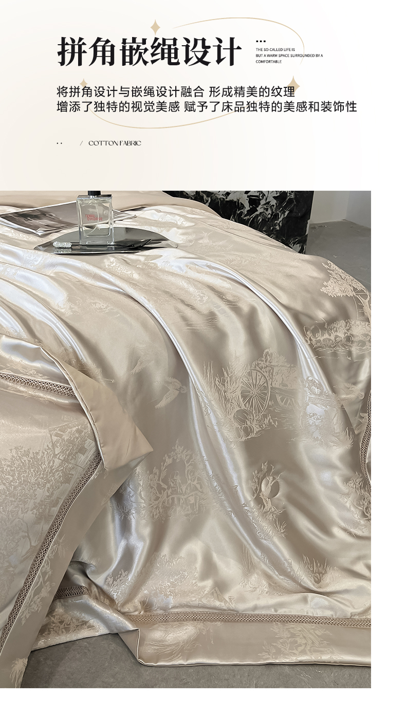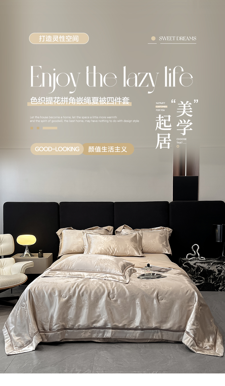 当前位置: 91家纺网 > 商品网购 > 床品套件 > 四件套 > 夏被四件套 > 博纳家纺 2025新款色织提花拼角嵌绳夏被四件套-山水 香槟