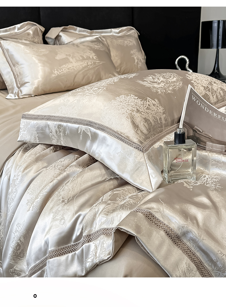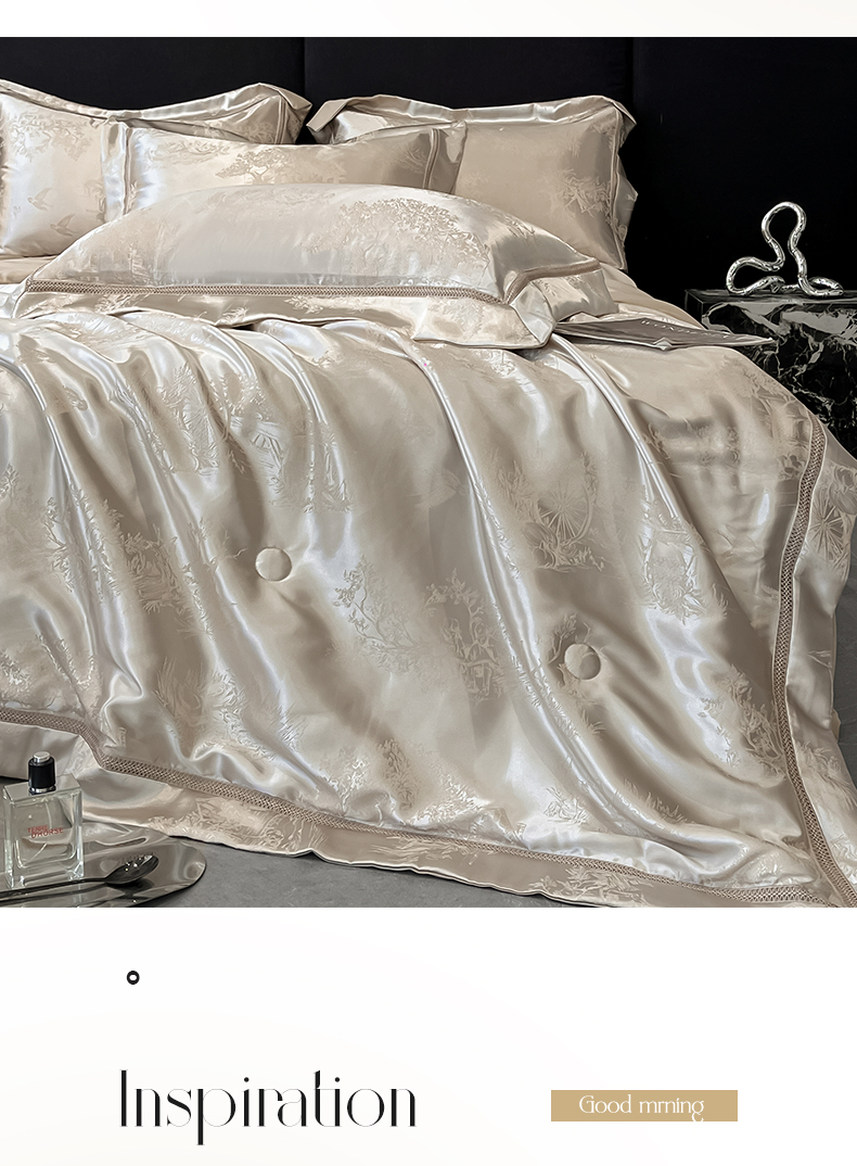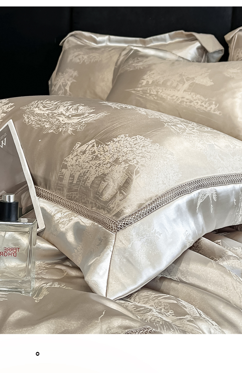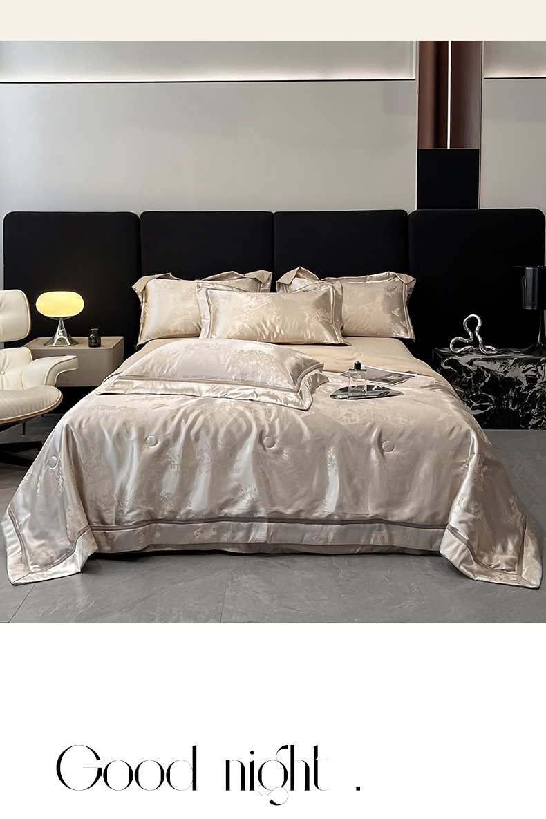 当前位置: 91家纺网 > 商品网购 > 床品套件 > 四件套 > 夏被四件套 > 博纳家纺 2025新款色织提花拼角嵌绳夏被四件套-山水 香槟