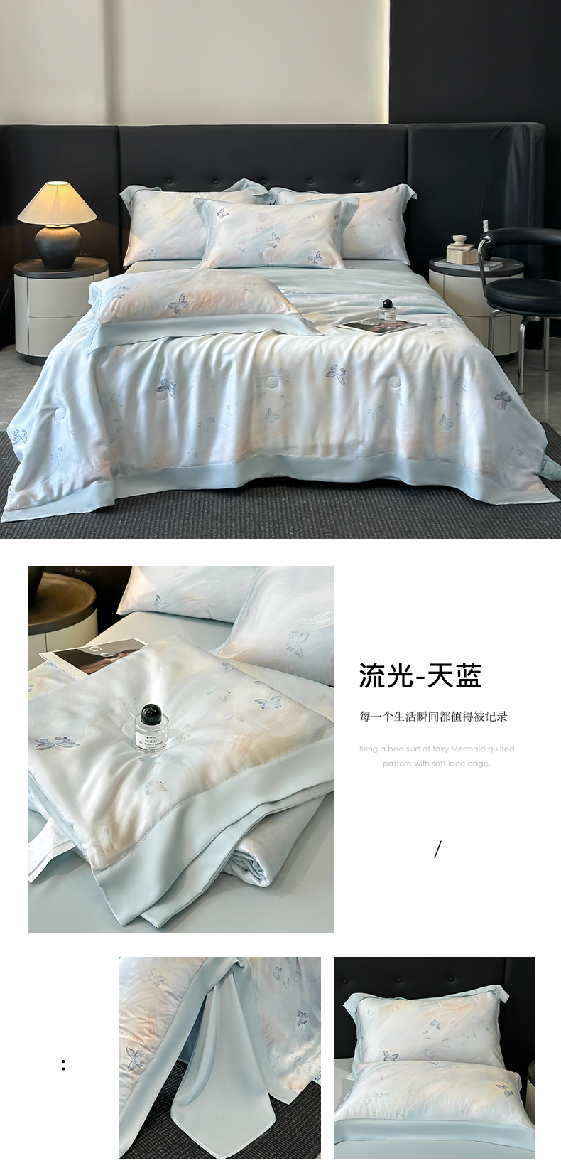 当前位置: 91家纺网 > 商品网购 > 床品套件 > 四件套 > 夏被四件套 > 博纳家纺 2025新款天丝夏被四件套-半夏 流光-天蓝
