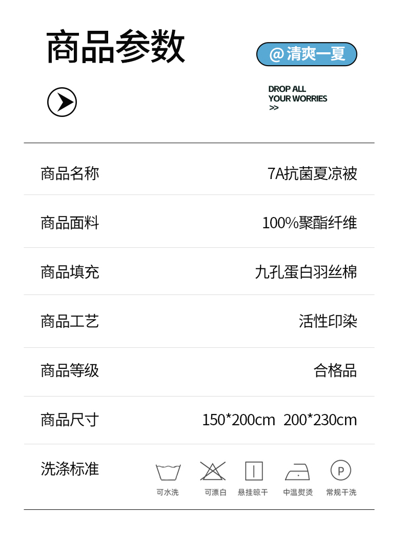 商品名称:招财狼家纺 2025新款亚朵同款7A活性印染抗菌夏凉被空调被夏被 凉感蓝