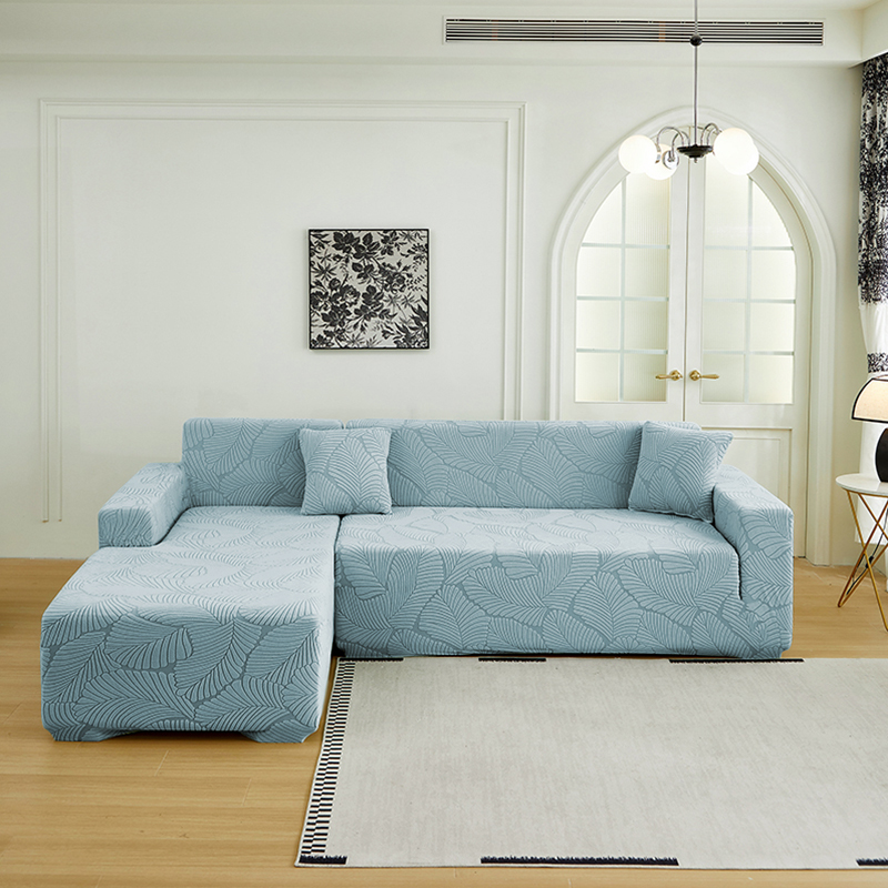 商品名称:丝绮鹿 2025新款雕花绒大叶子沙发套松紧款(贵妃图新) 雾霾蓝