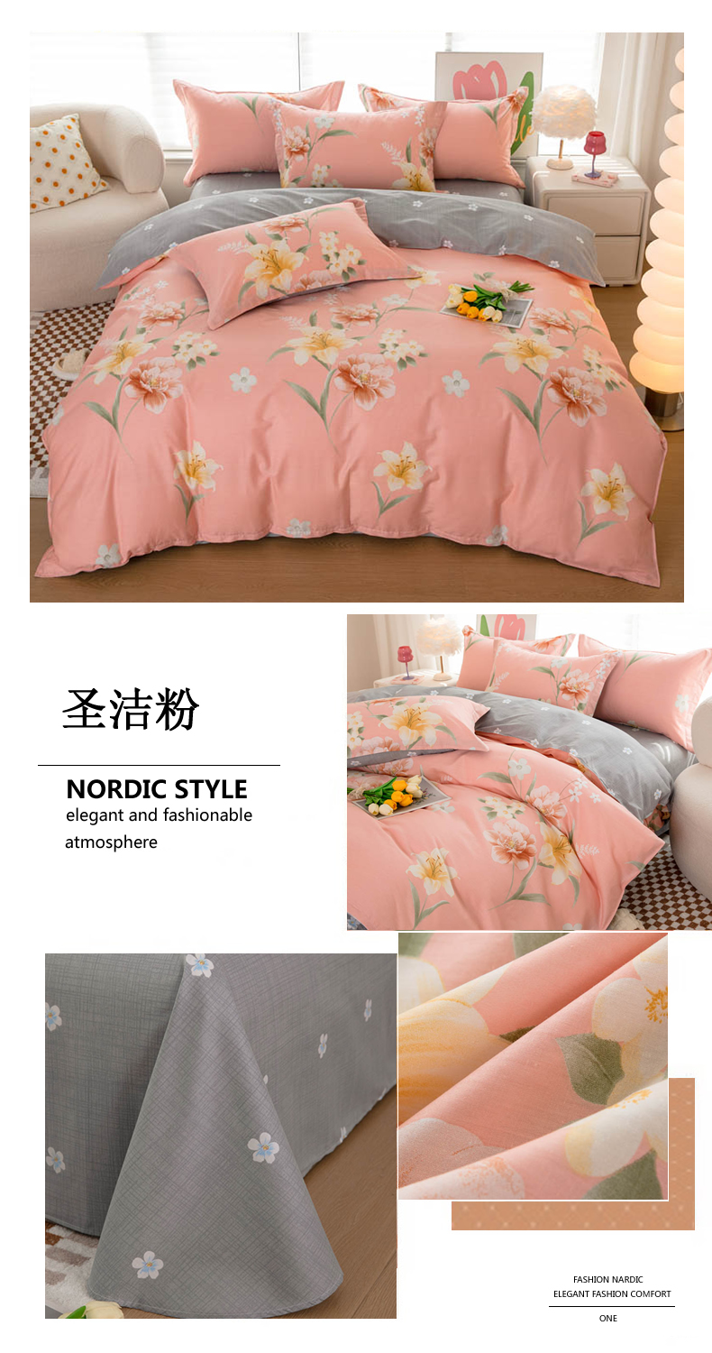 当前位置: 91家纺网 > 商品网购 > 床品套件 > 四件套 > 全棉普通四件套 > 贝兰仙奴 2025春夏新款全棉纯棉12868印花四件套 圣洁粉