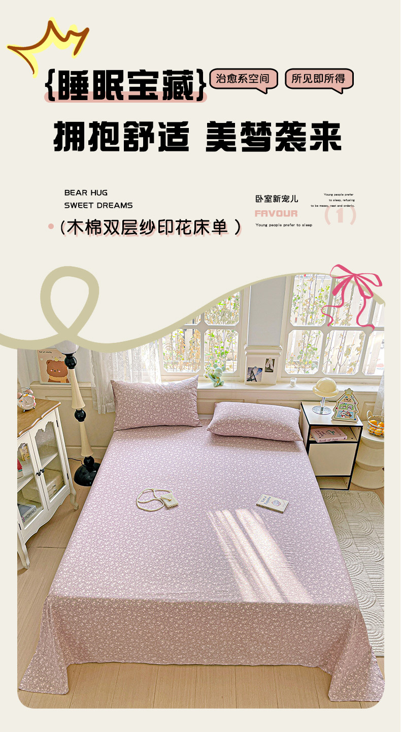 当前位置: 91家纺网 > 商品网购 > 床品套件 > 三件套 > 优选 2025新款母婴级ins小清新双层纱印花床单枕套三件套 晨幕花间