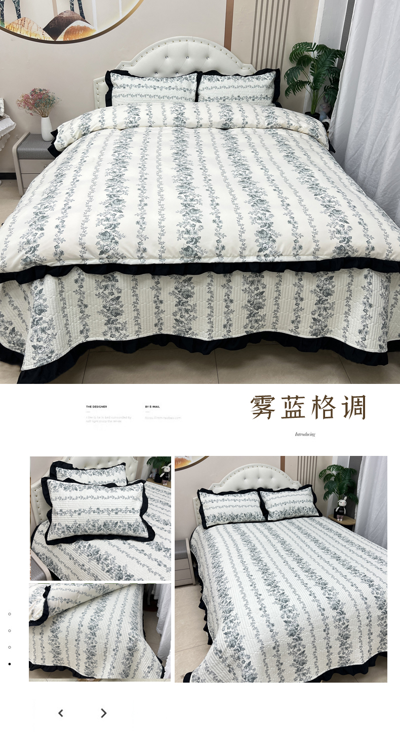 2024新款13372全棉斜纹夹棉绗缝纯棉花边床盖 茜茜公主,茜茜公主
