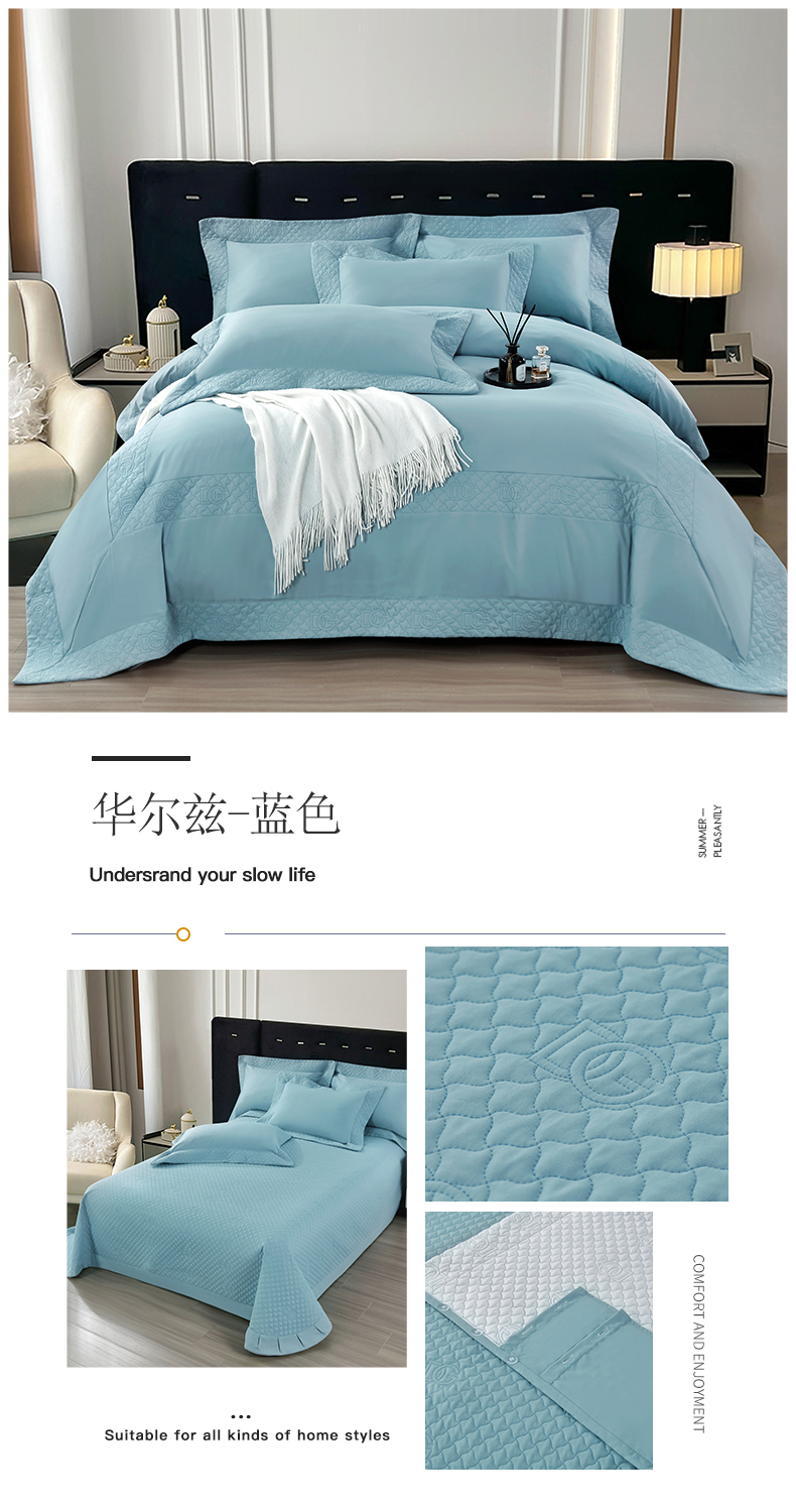 商品名称:OL家纺2025新款轻奢风氧乐棉床盖夹棉防滑四件套 华尔兹-蓝色