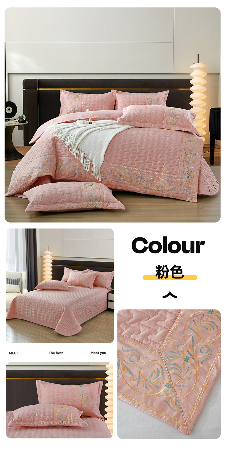 商品名称:OL家纺 2025春夏新款轻奢风针织云棉床盖夹绵防滑床盖款四件套 粉色