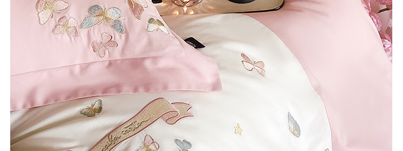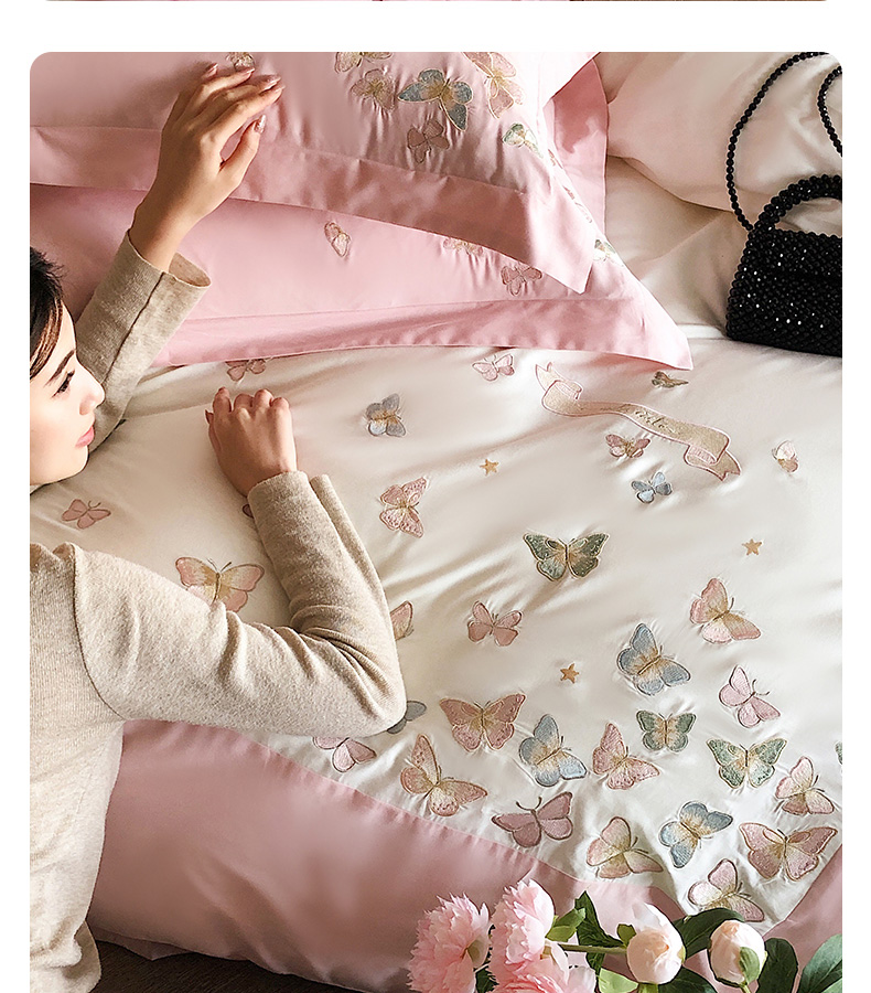 商品名称:卡姿家纺 2025新款清新风格刺绣四件套-- 彩蝶 彩蝶-粉