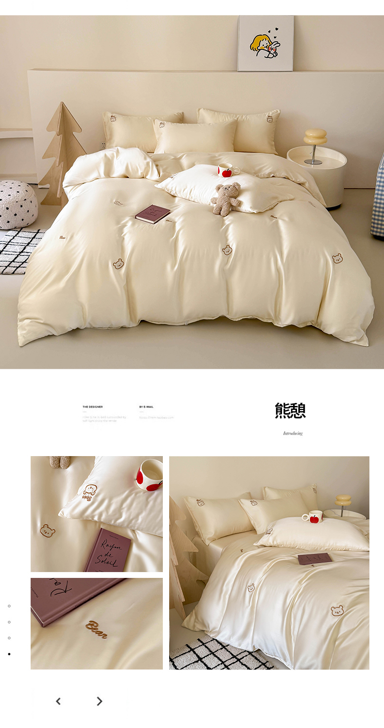 商品名称:蜜柚 2025新品60S奥地利兰精天丝小元素刺绣三件套四件套 熊憩