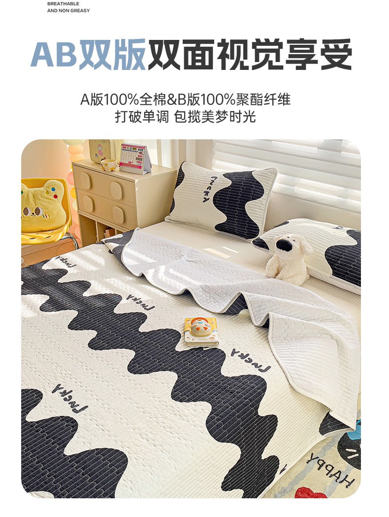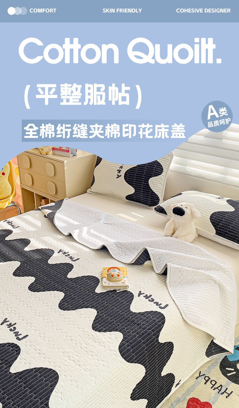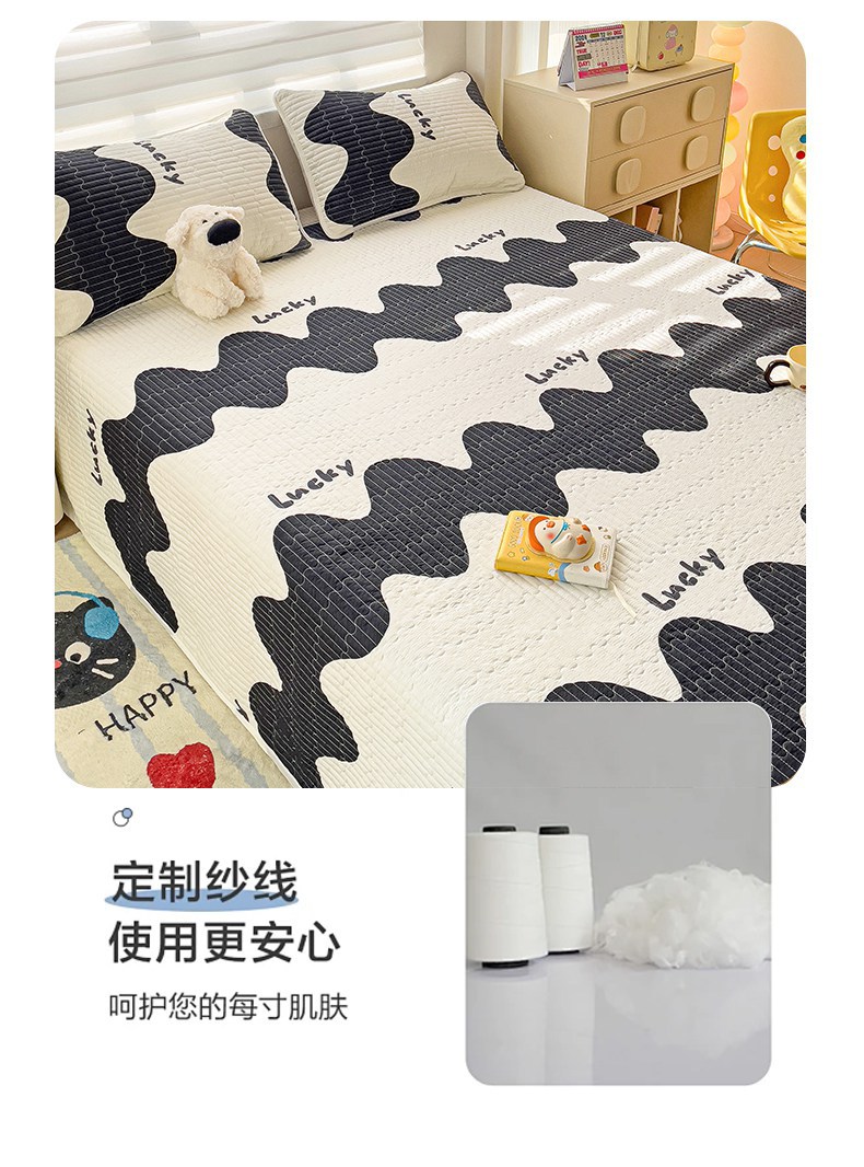 • 91家纺网 家纺一手货源 找家纺 金鑫汇家纺 2025新款全棉绗缝夹棉印花床盖 波浪世界