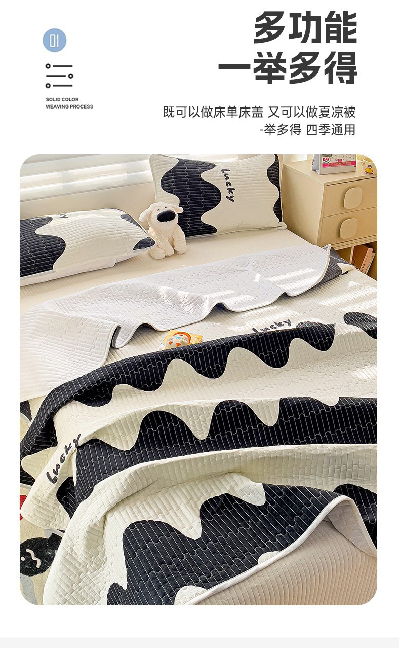 金鑫汇家纺 2025新款全棉绗缝夹棉印花床盖 波浪世界