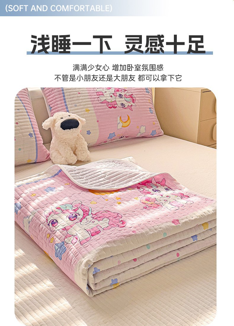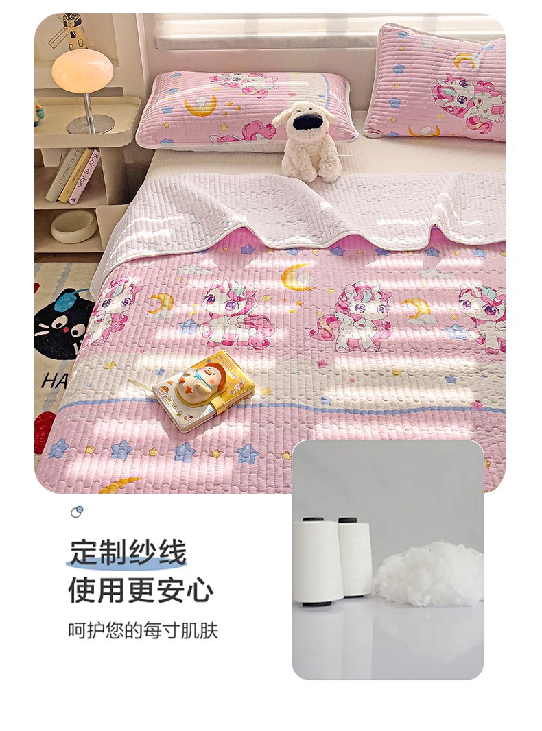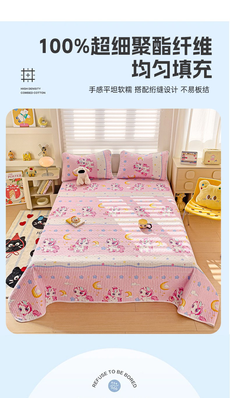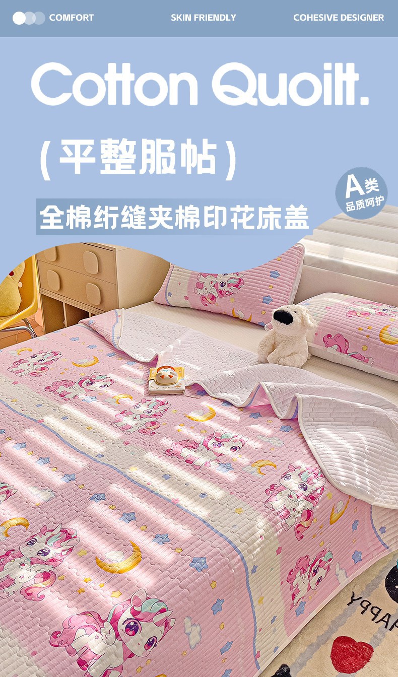 金鑫汇家纺 2025新款全棉绗缝夹棉印花床盖 小马莉儿