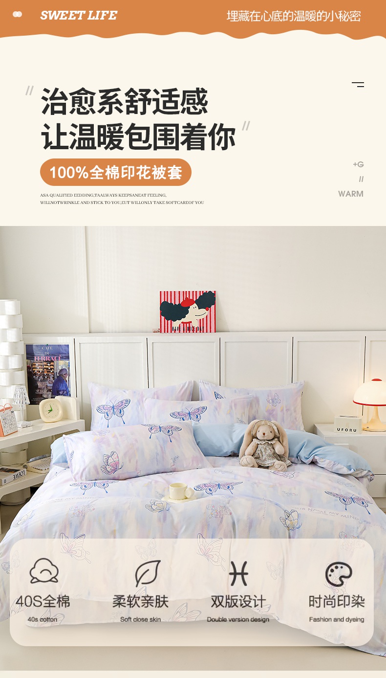 金鑫汇家纺 2025新款13070全棉好卖花型套件系列-单被套 梦蝶