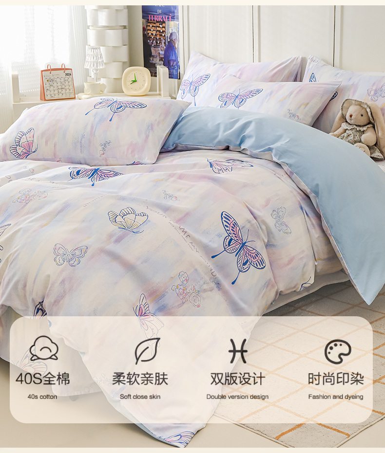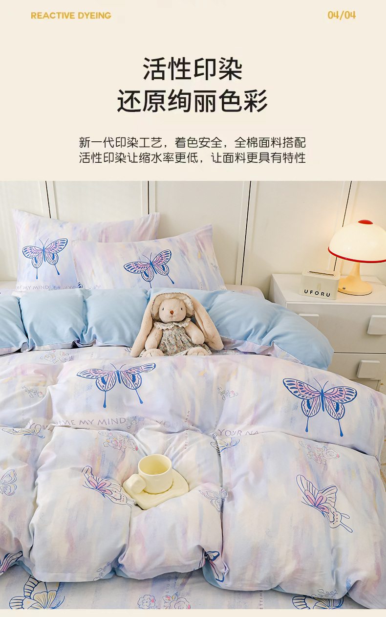 当前位置: 91家纺网 > 商品网购 > 床品套件 > 四件套 > 全棉普通四件套 > 金鑫汇家纺 2025新款13070全棉好卖花型套件系列-四件套 梦蝶