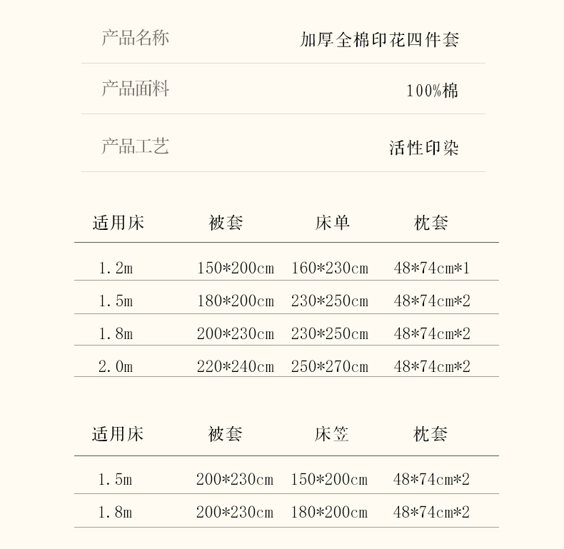 1.8床四件套被套200x230 | ¥83.00 |
