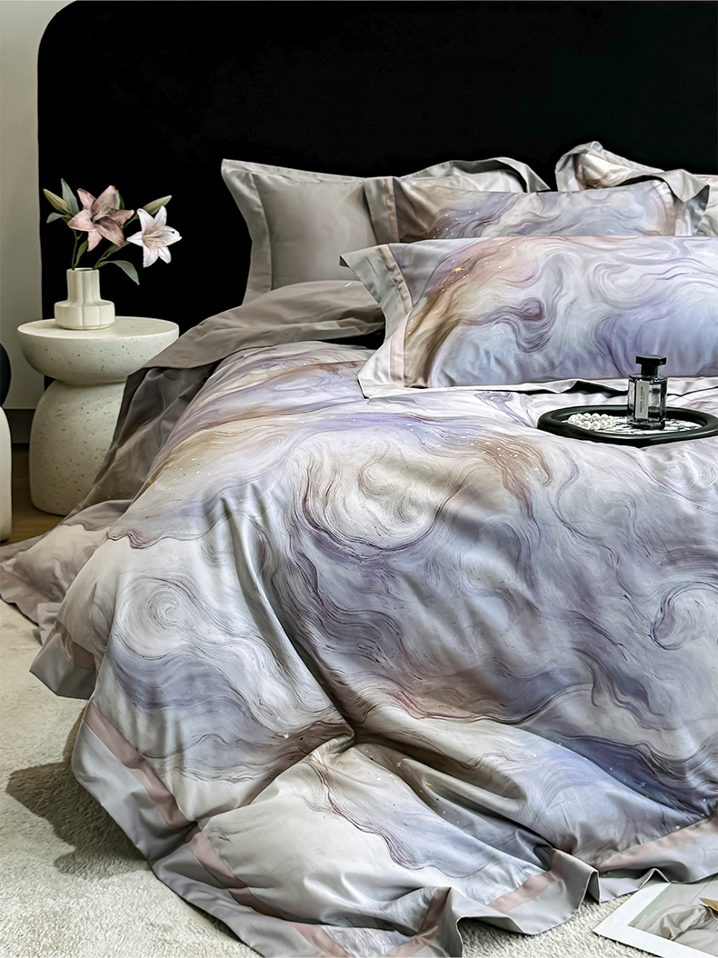 禾时 2025新款高端100S长绒棉数码印花双拼边全棉纯棉四件套 星河入梦-蓝