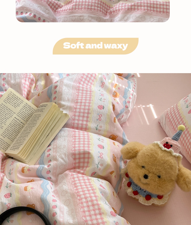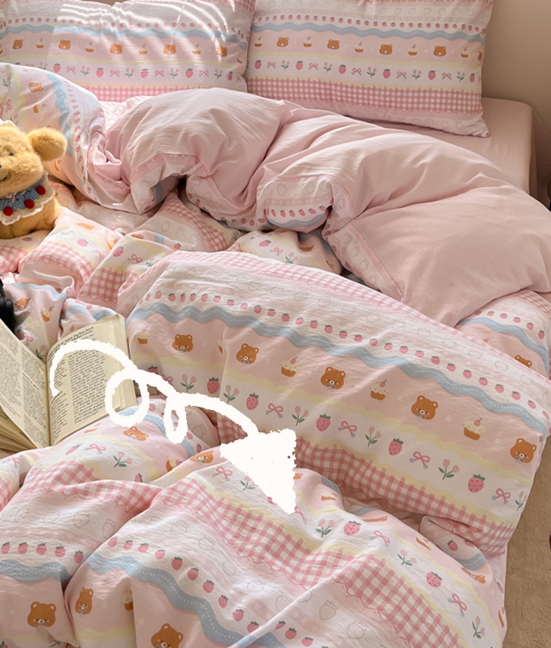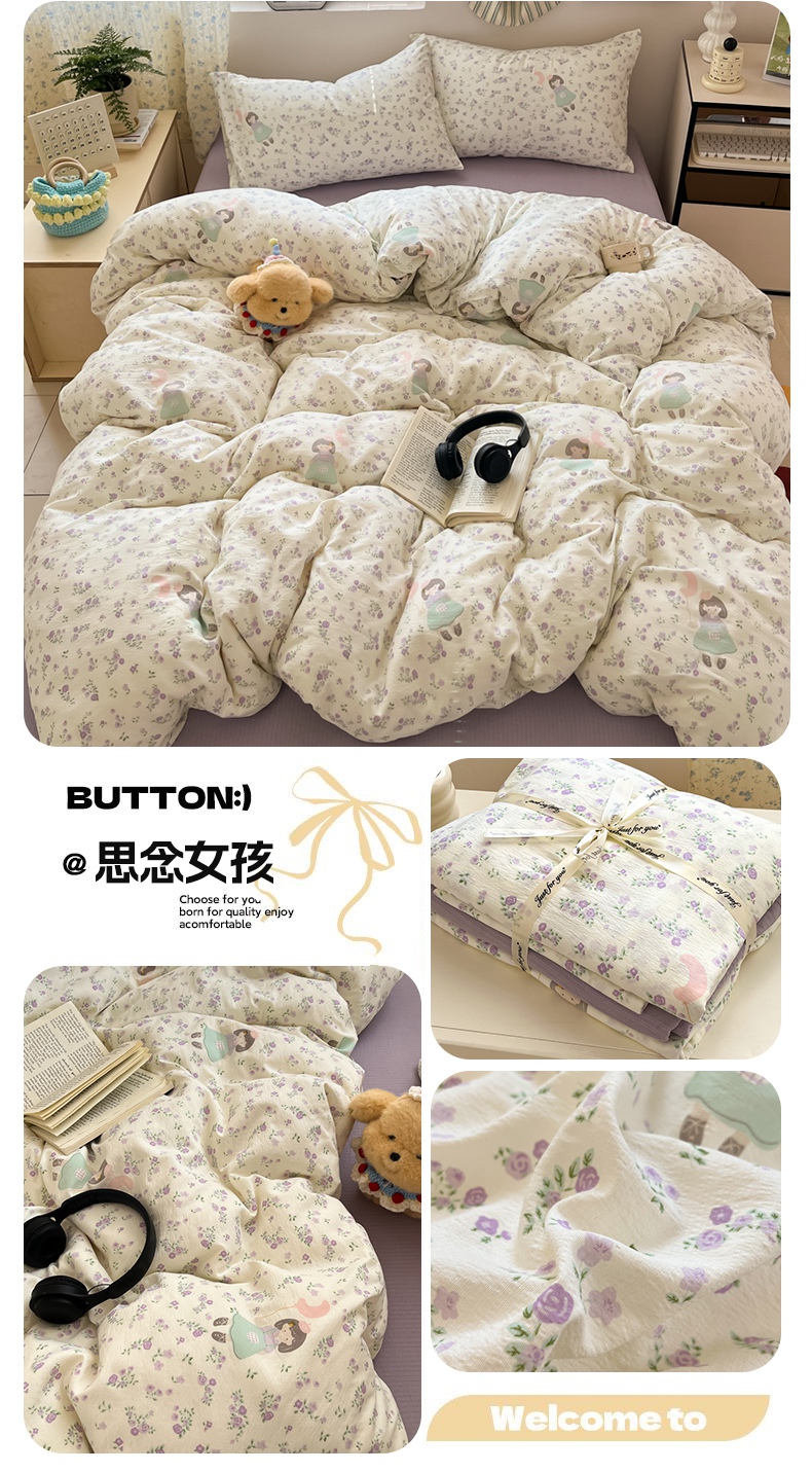 当前位置: 91家纺网 > 商品网购 > 床品套件 > 四件套 > 双层纱四件套 > 玉海棠家纺 2025新款云感提花双层纱印花系列四件套-场景一 诺言兔兔
