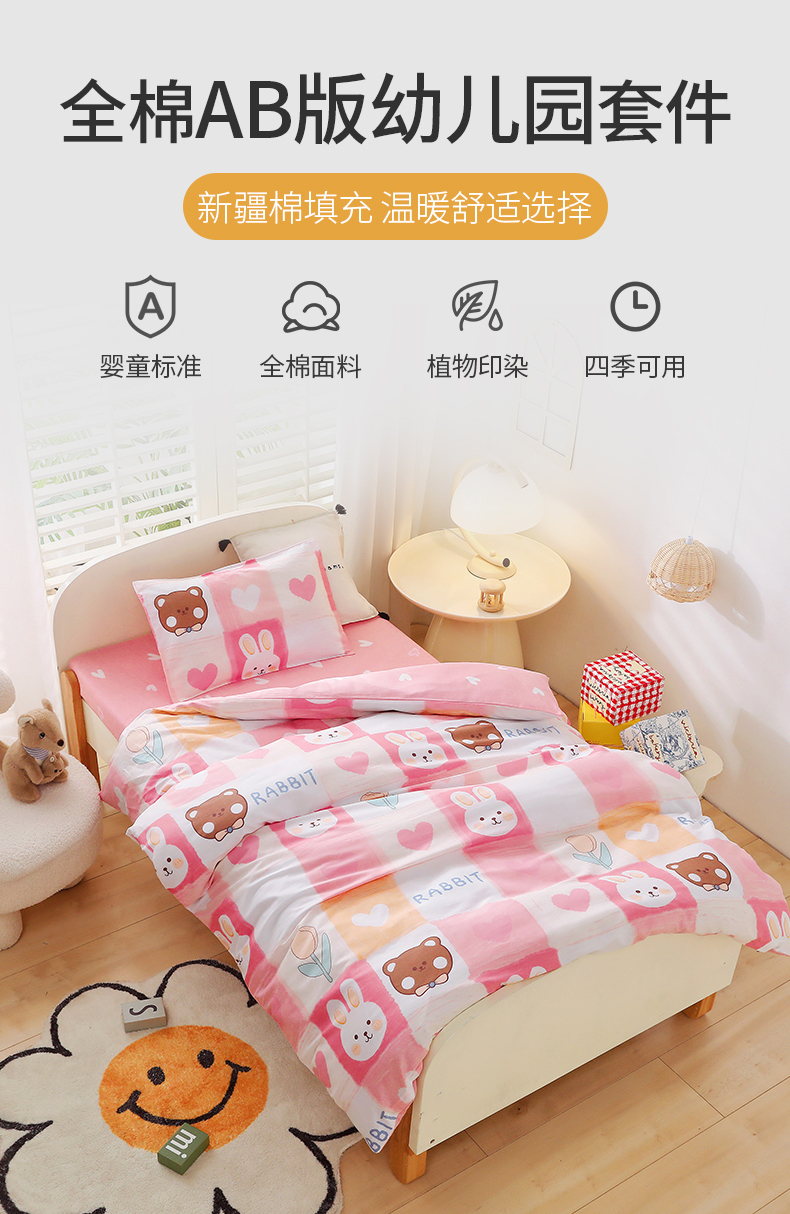 当前位置: 91家纺网 > 商品网购 > 床品套件 > 多件套 > 多件套 > 2025年新款幼儿园全棉被子三件套宝宝入园纯棉六件套被褥午睡被套奶油兔
