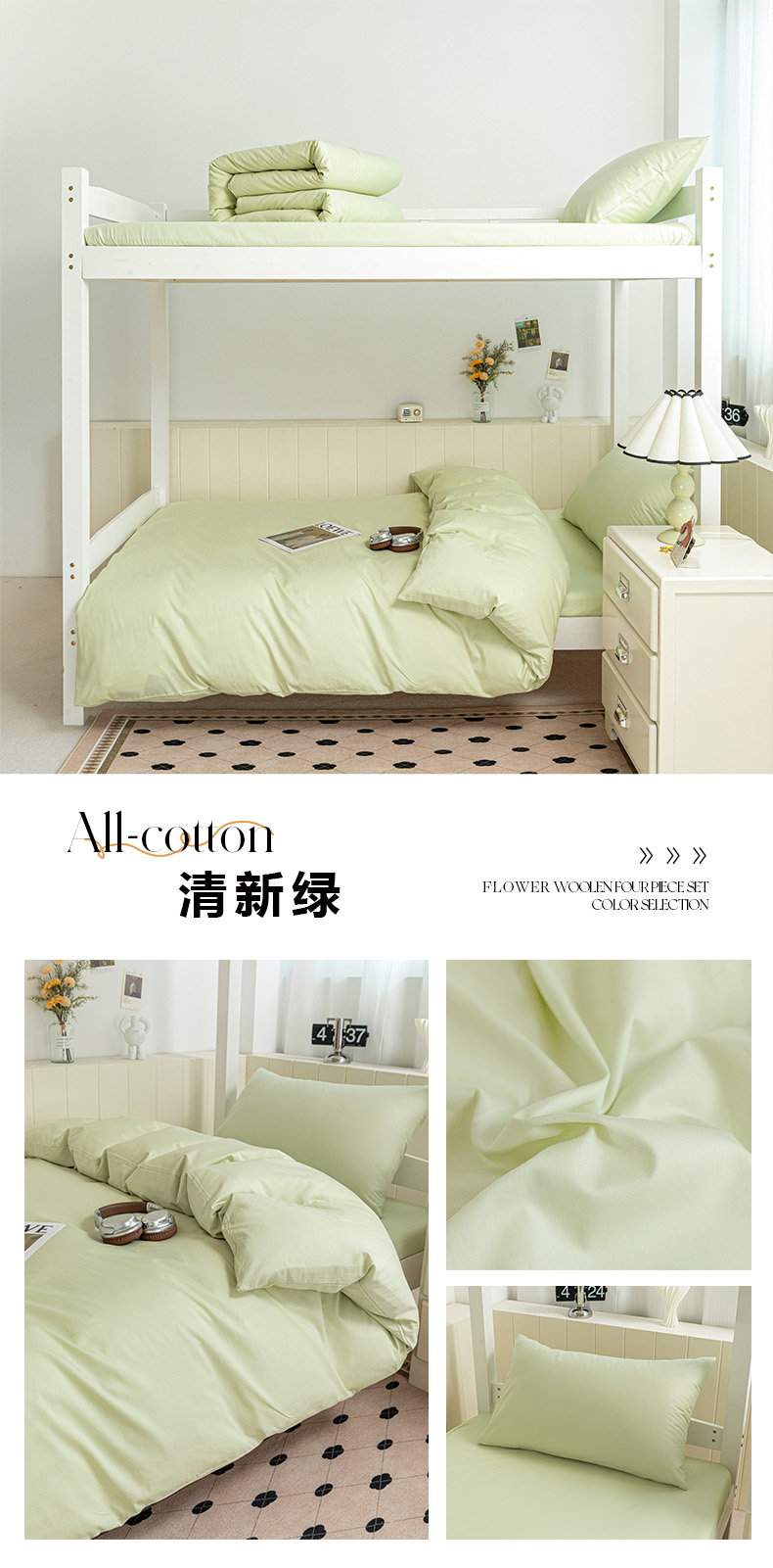商品名称:有点武功 2025新款全棉纯棉纯色40支13372床单床笠款学生三件套 清新绿