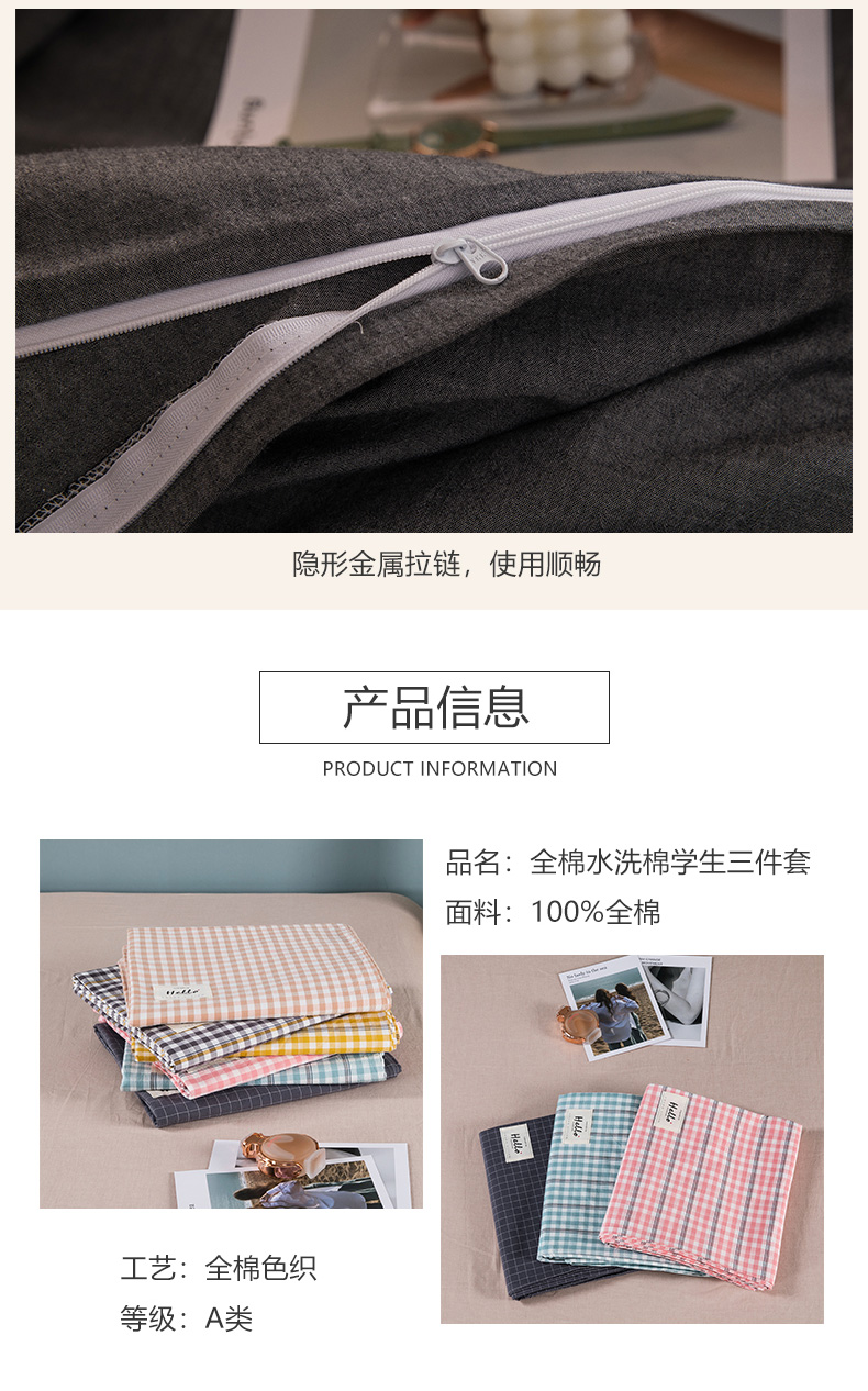 当前位置: 91家纺网 > 商品网购 > 床品套件 > 三件套 > 柠萌家居 2025年新款色织A类学生宿舍床笠三件套床垫套 深灰