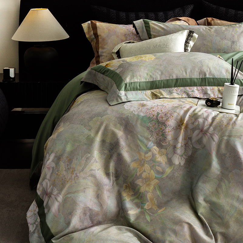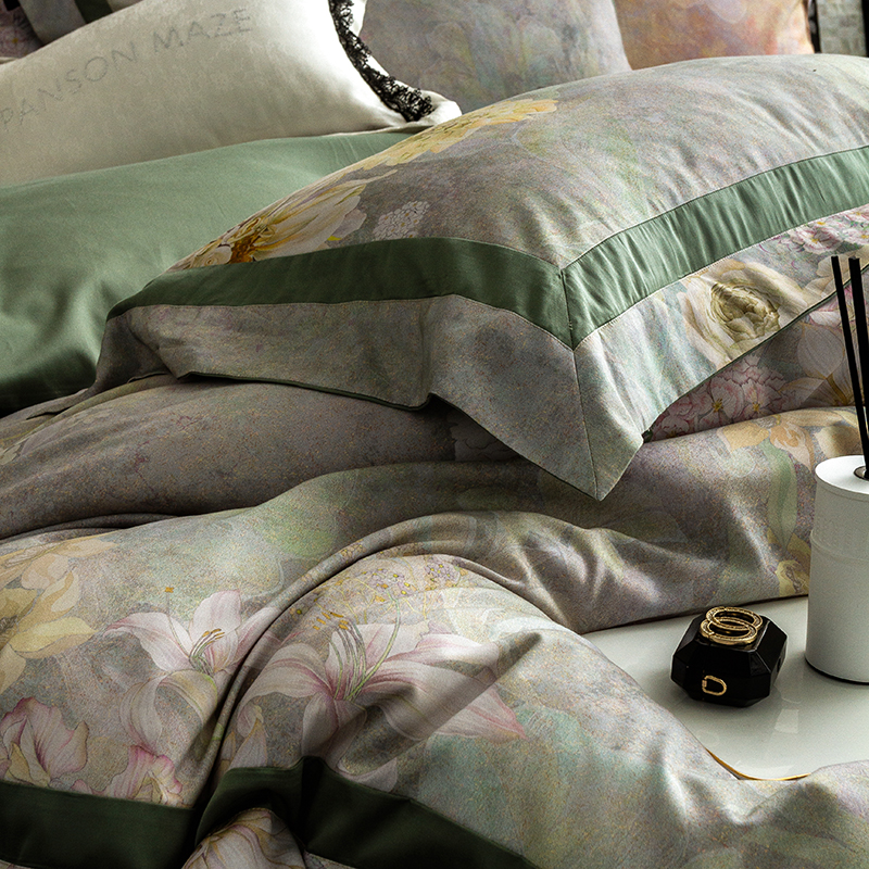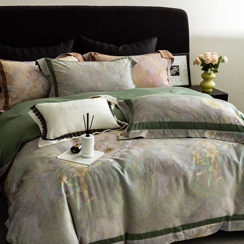 商品名称:威克凯丽 2024新款长绒棉数码印花100S磨毛双拼四件套 云玺-B翠绿