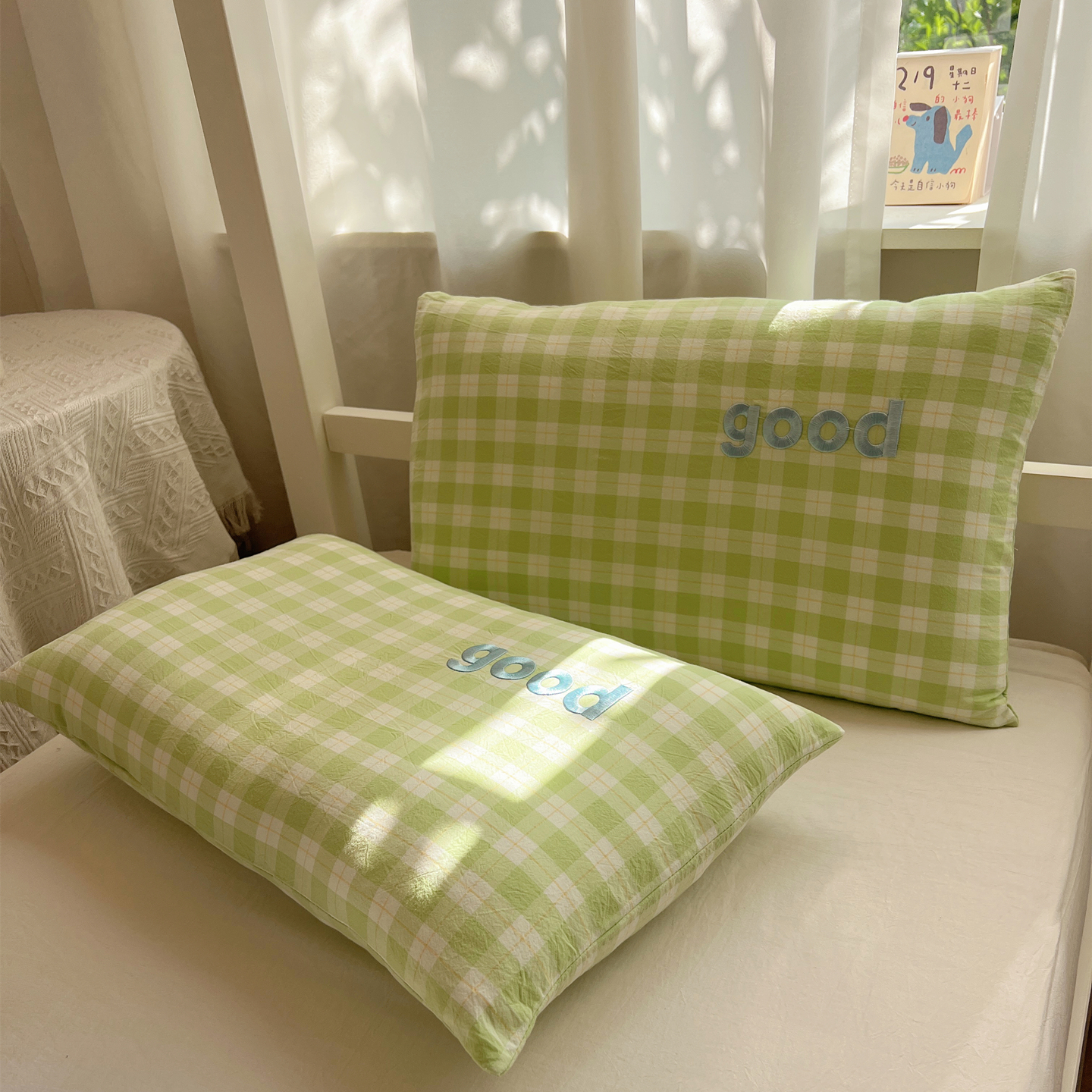 丽涵家纺 2025新款全棉纯棉色织水洗棉刺绣婴幼儿童枕套枕套单件单枕套-儿童款 尚格-绿