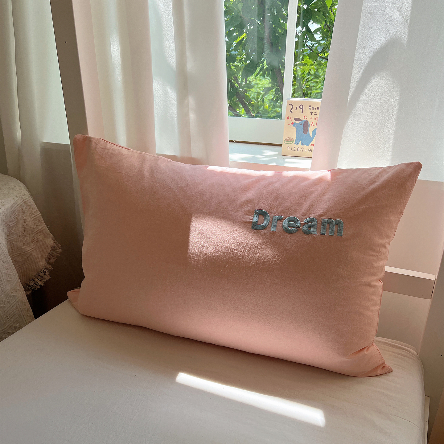丽涵家纺 2025新款全棉纯棉色织水洗棉刺绣单品枕套枕套单件单枕套-常规单人款 尚格-桔+好梦-黄