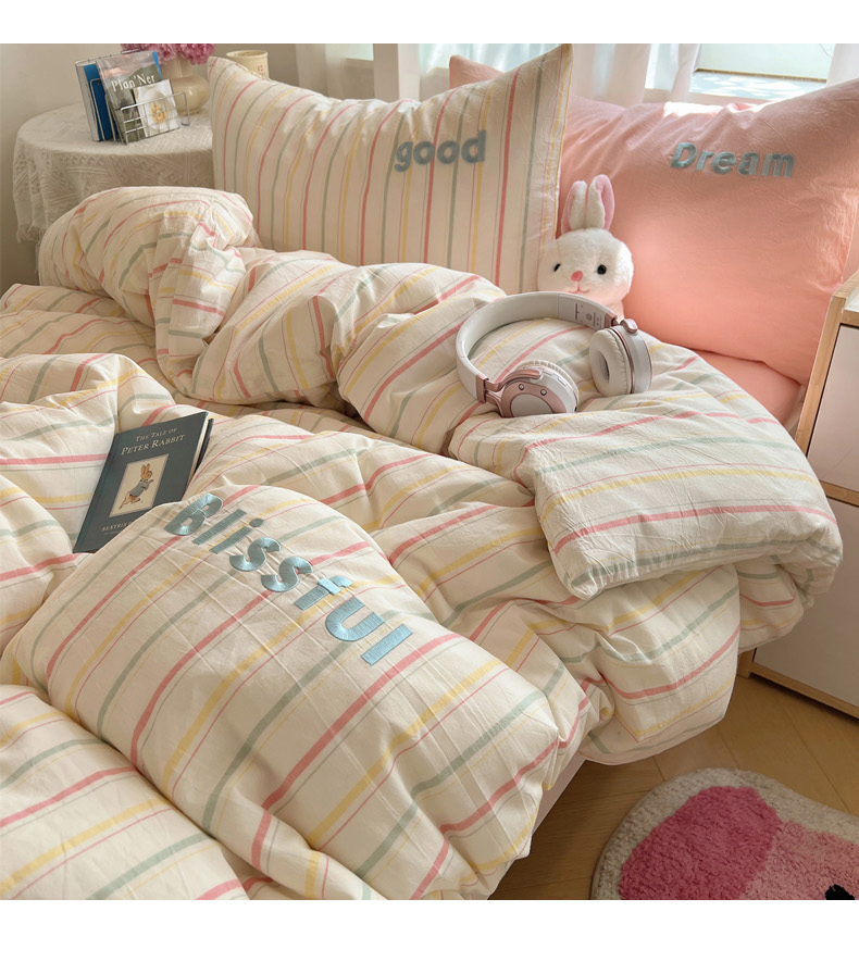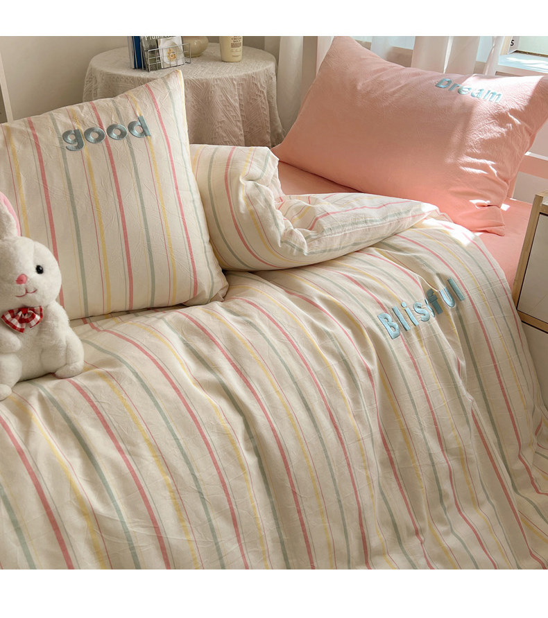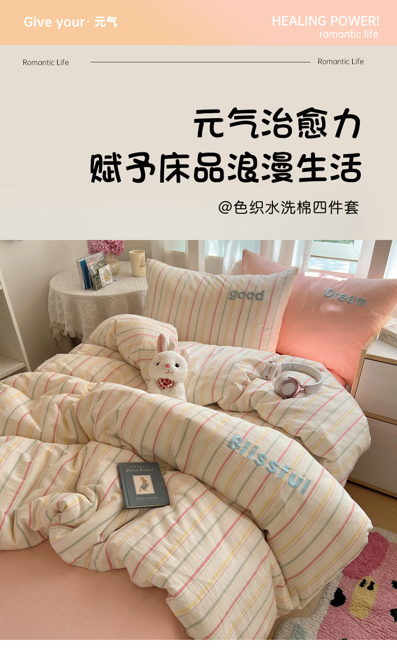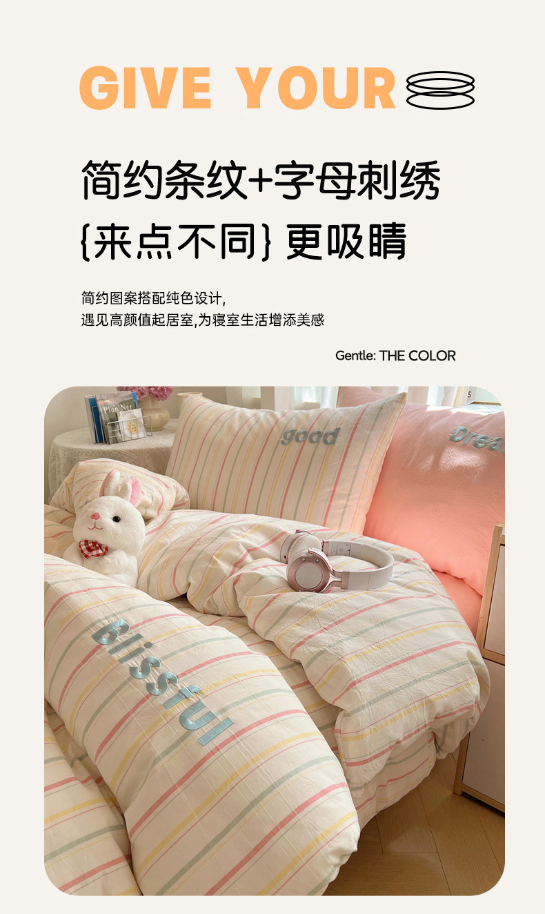 当前位置: 91家纺网 > 商品网购 > 床品套件 > 四件套 > 水洗棉四件套 > 丽涵家纺 2025新款全棉纯棉色织水洗棉刺绣三件套四件套 韵律-粉