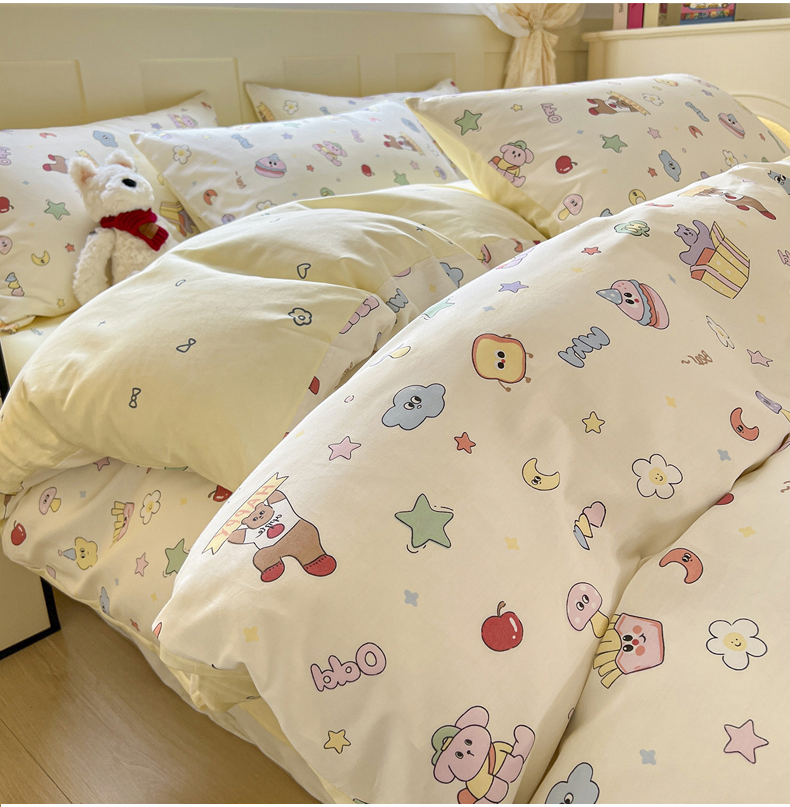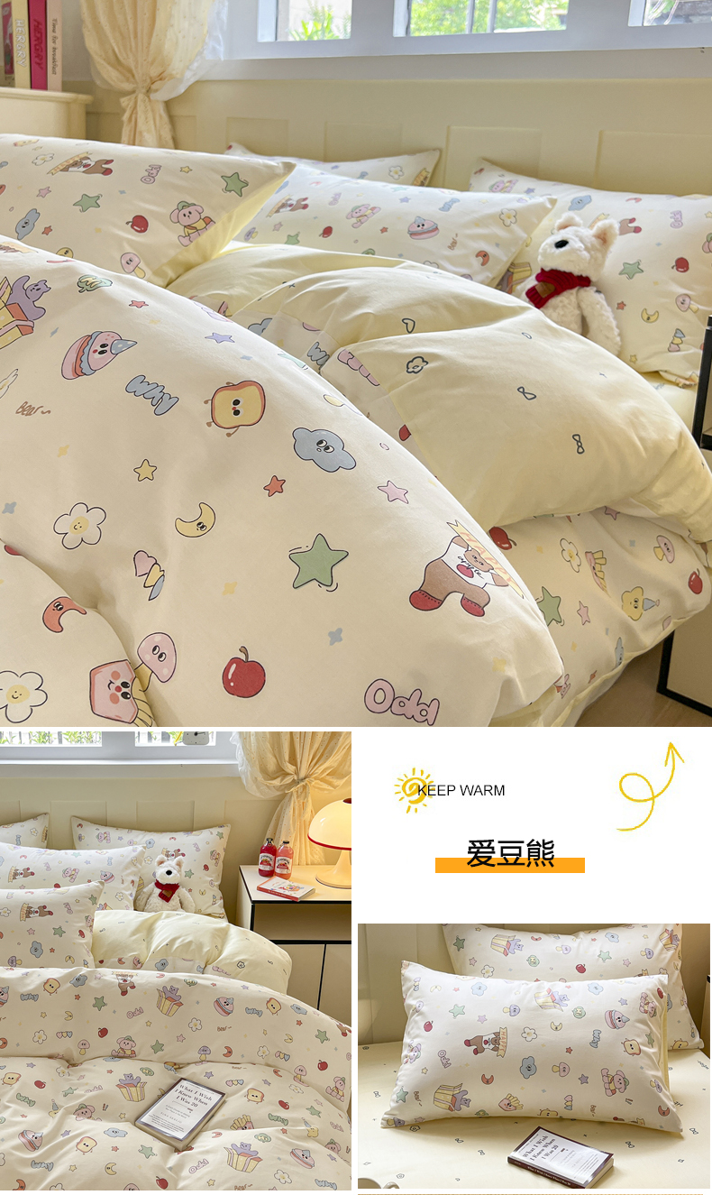 (总)麦伦家居 2025秋冬新品多功能床品全棉+豆豆绒四件套卡通小清新系列,迪迪龙,好友鸭,花韵抹茶,浣花,杰克熊,乐园小马,清茶小熊,童趣米,星星小象蓝,云朵腊肠狗,粉色玫瑰,可爱小兔-米黄,木马小熊蓝,拾趣爱宠,星星木马