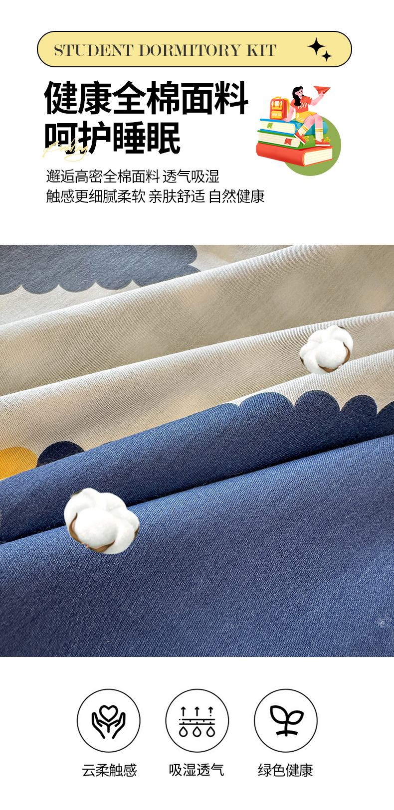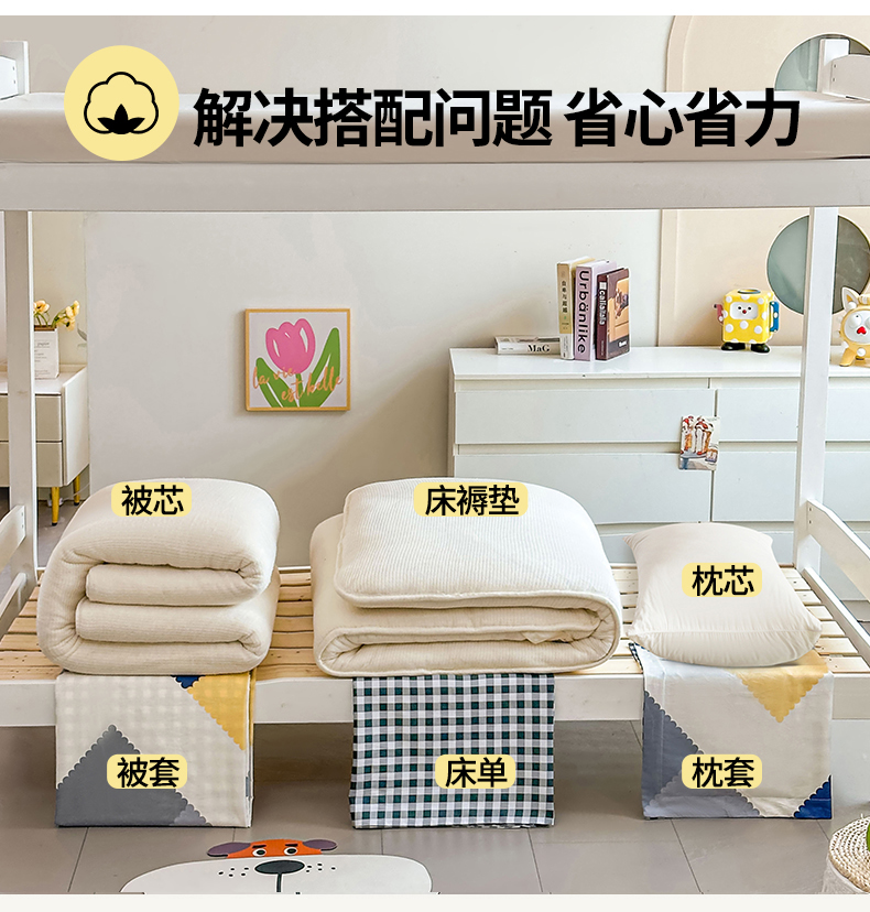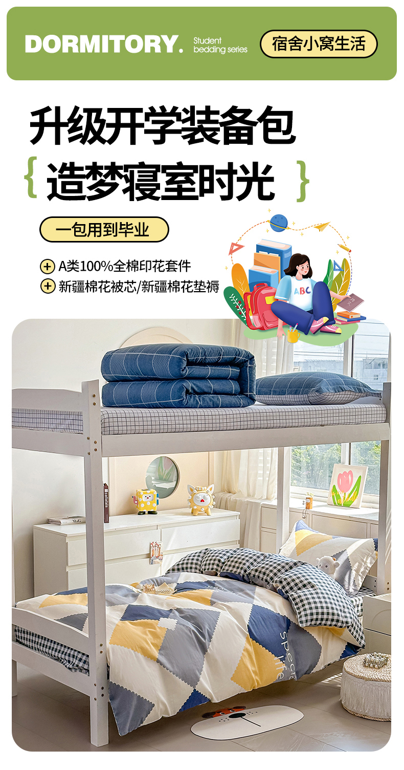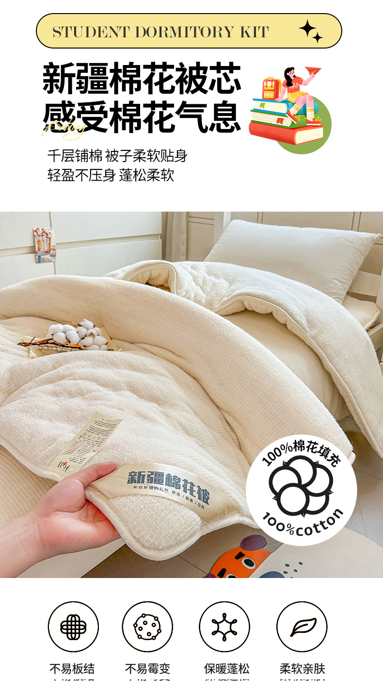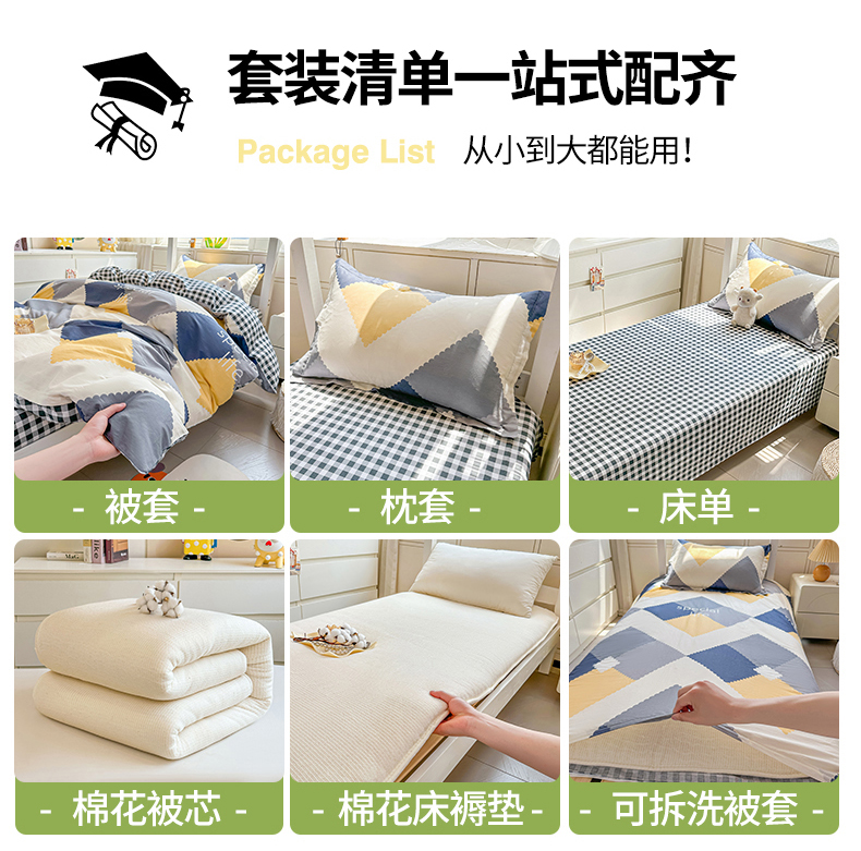 商品名称:(总)西域种棉人·千百笠 2025新款全棉纯棉六件套大学生宿舍100%新疆棉花被子被褥一整套枕头床垫三件套