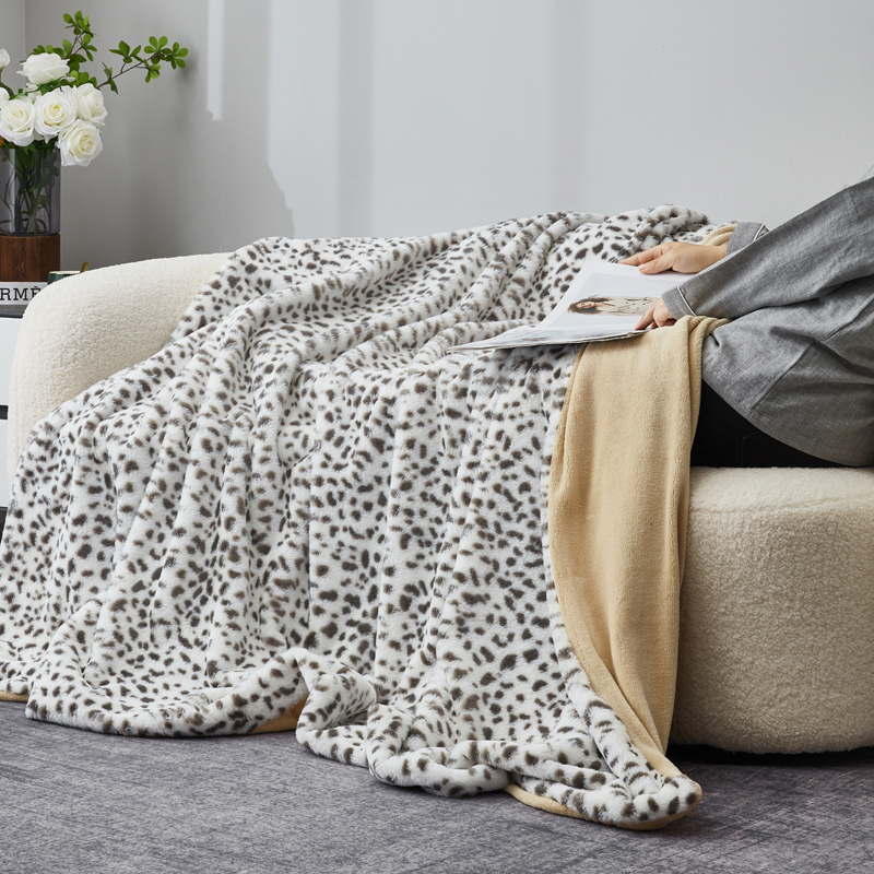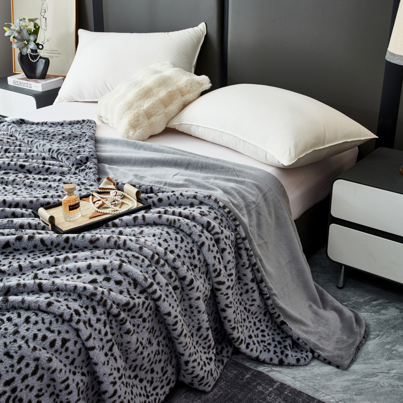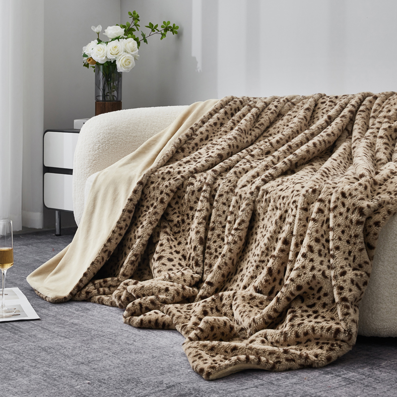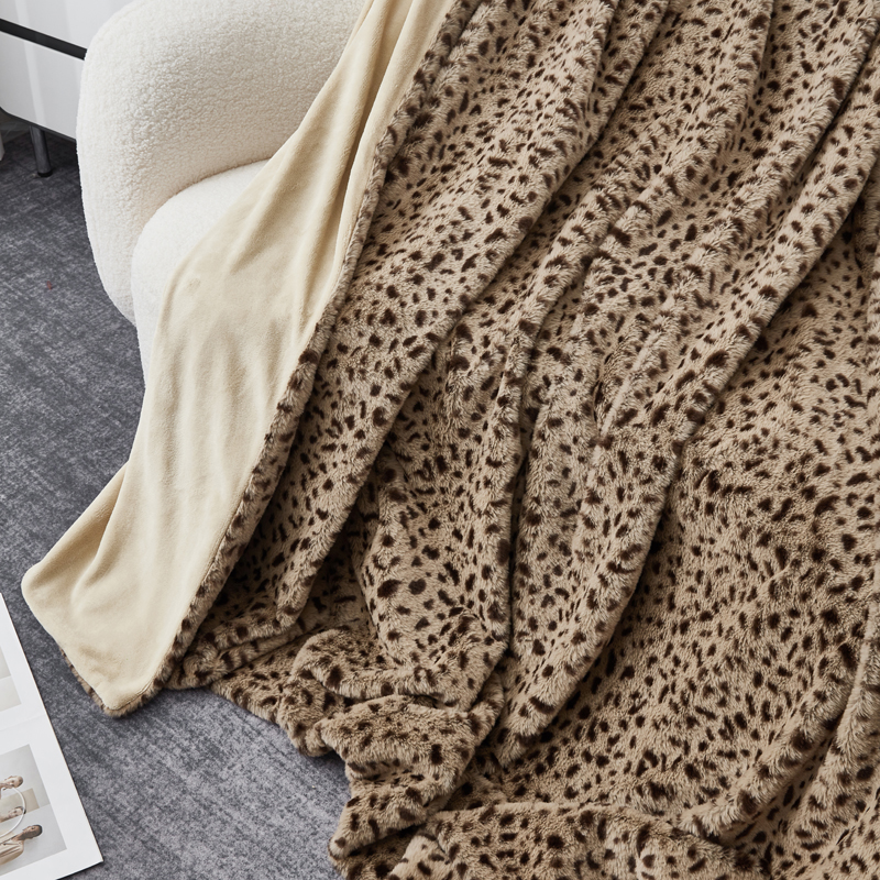 商品名称:(总)库里梦家纺 2025新款跨境专供兔毛豹纹毛毯盖毯毯子(支持定做任何尺寸)