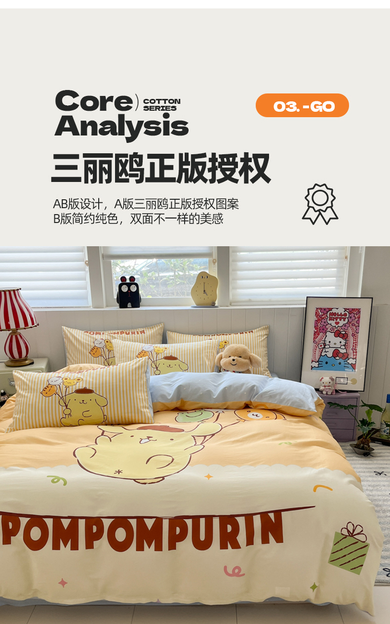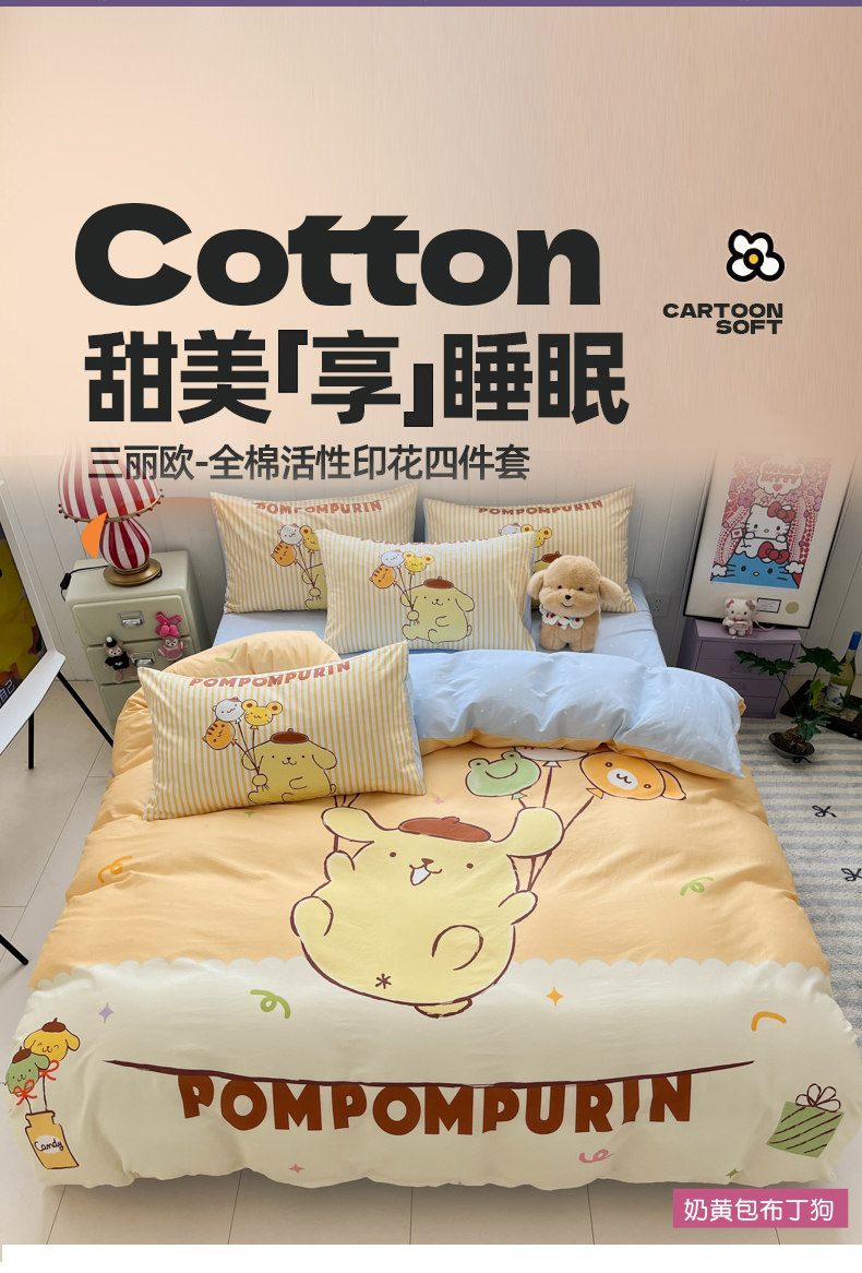 当前位置: 91家纺网 > 商品网购 > 床品套件 > 四件套 > 全棉普通四件套 > 金爱家 2025新款三丽鸥纯棉数码印花系列四件套 大阪-奶黄包布丁狗