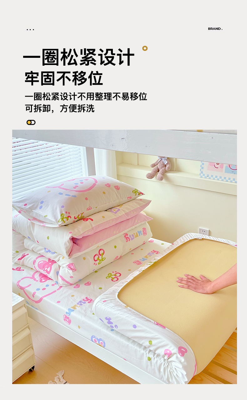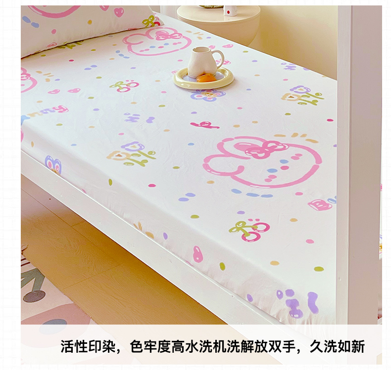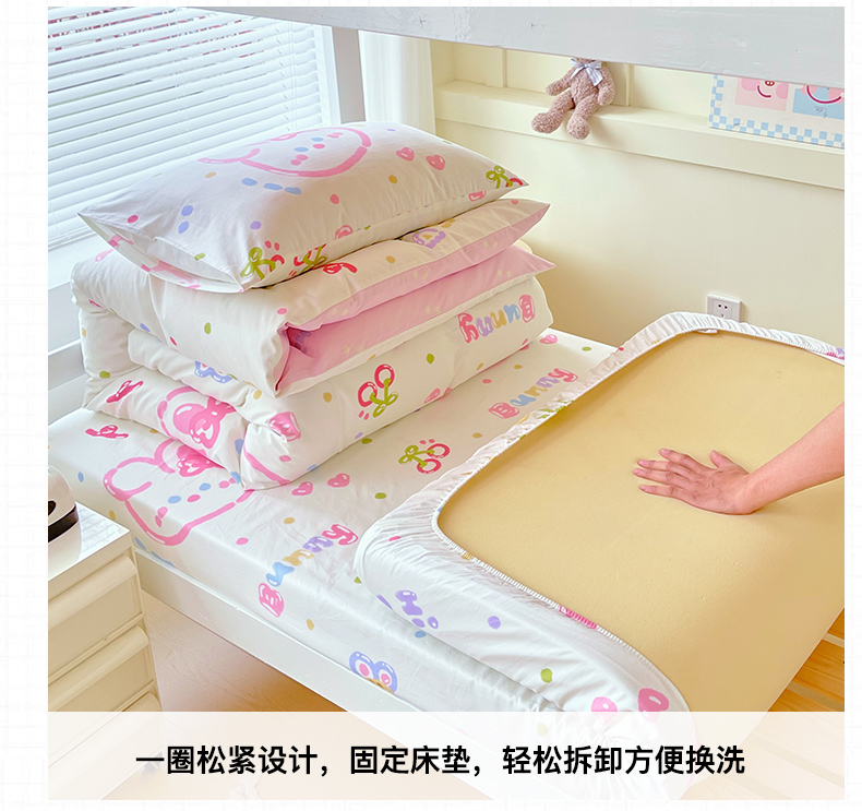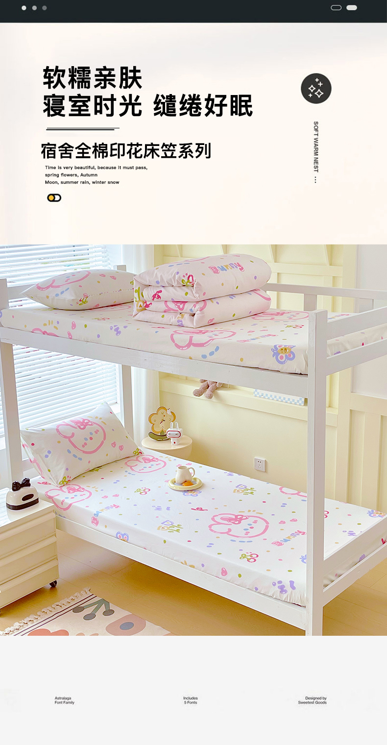 金鑫汇家纺 2025新款全棉学生宿舍单品床笠系列 花丛兔
