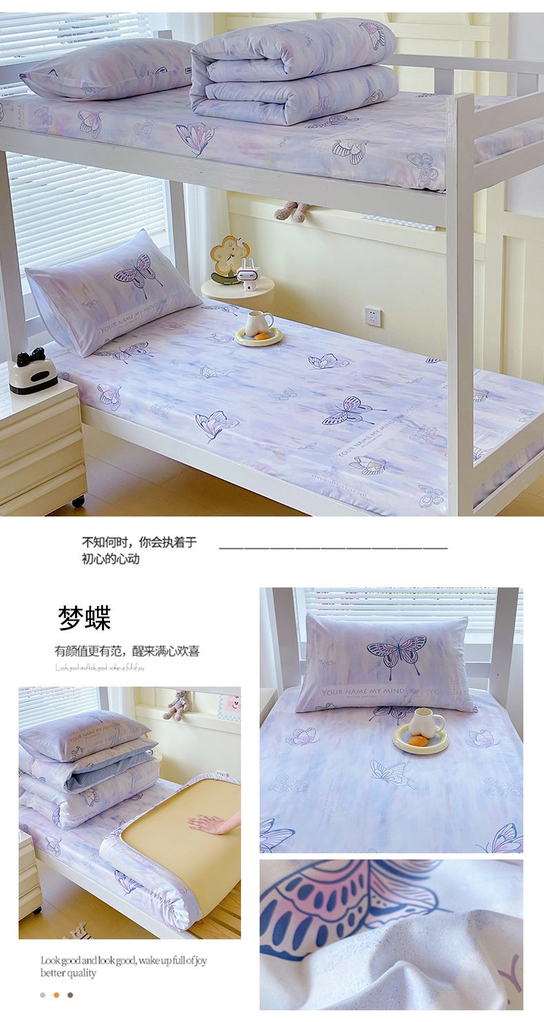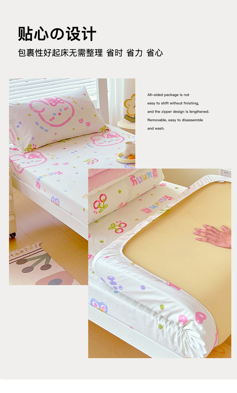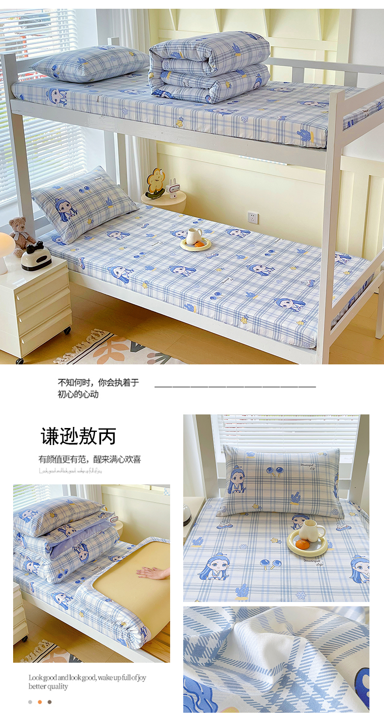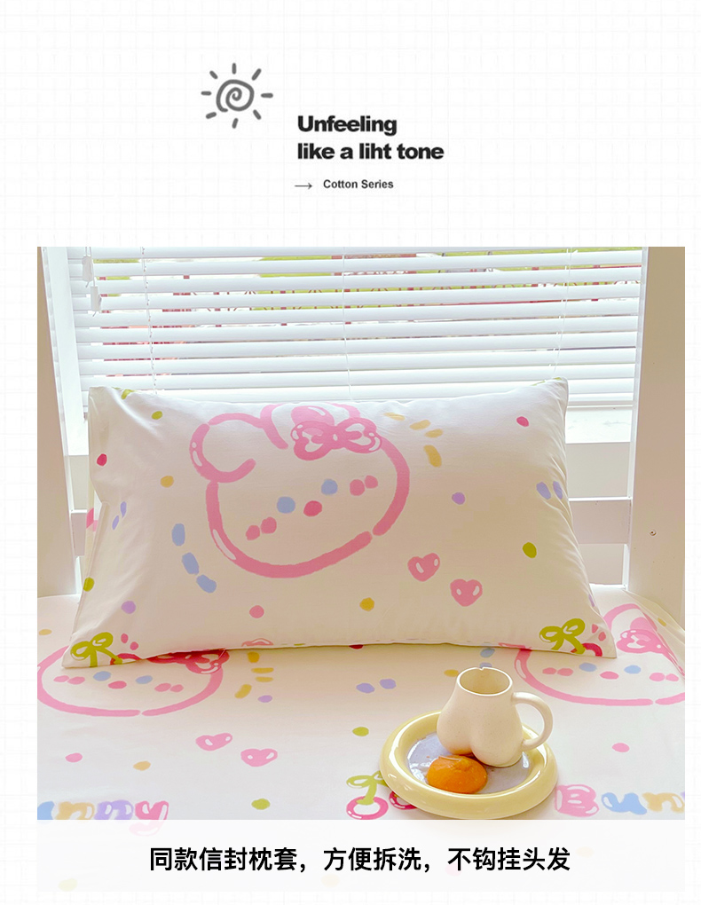 金鑫汇家纺 2025新款全棉学生宿舍单品床笠系列 花丛兔