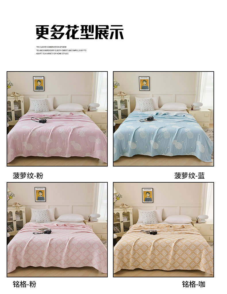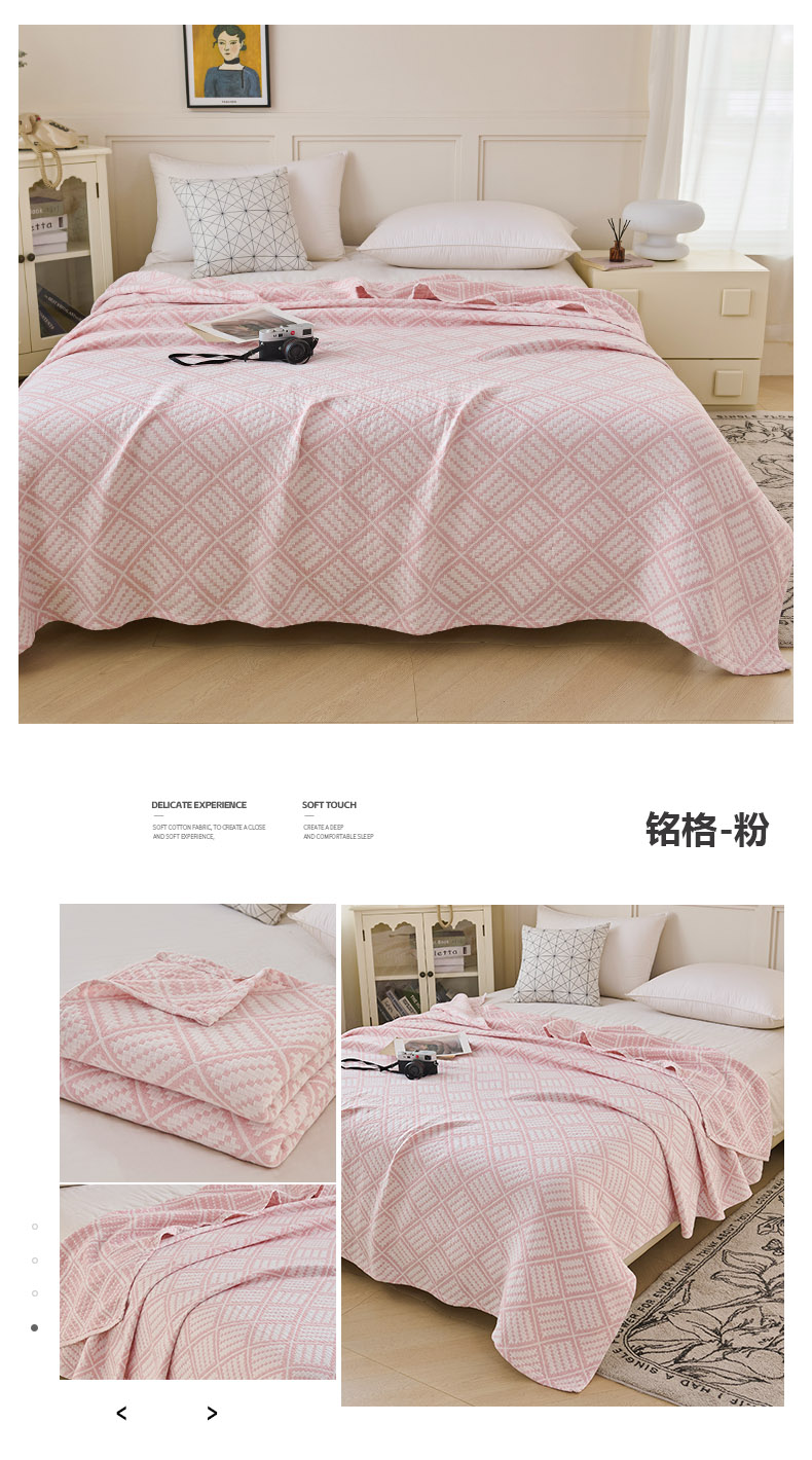 商品名称:小叮当家纺仓储工厂店 2025新款全棉纯棉多纱毛巾盖毯毯子 铭格-粉