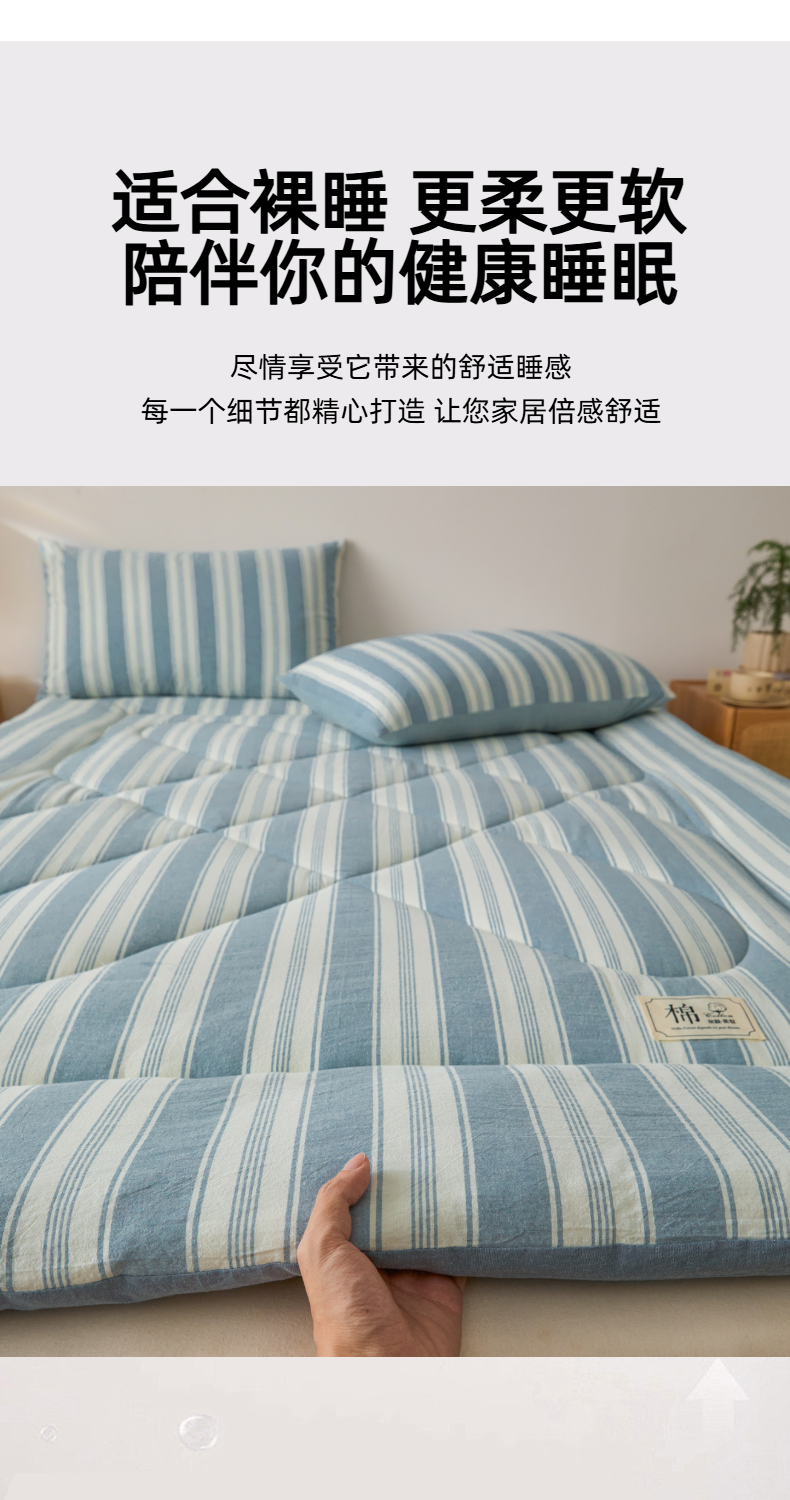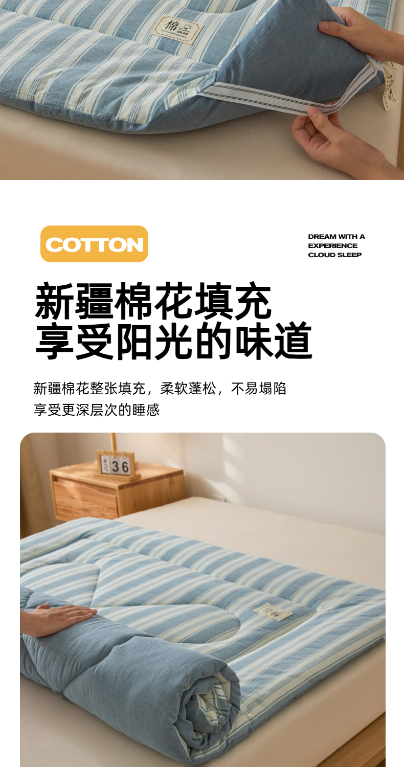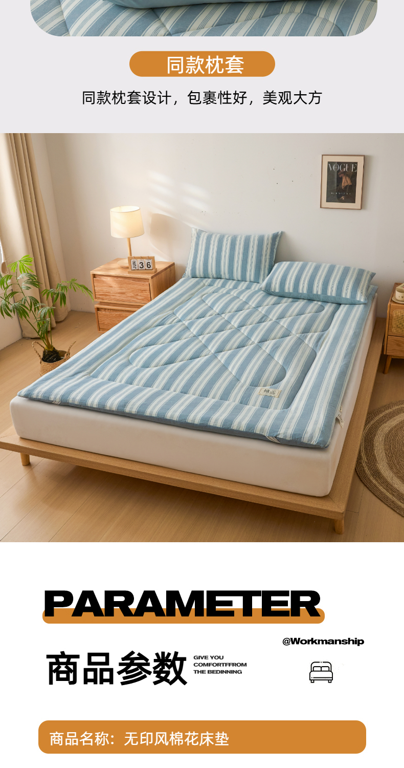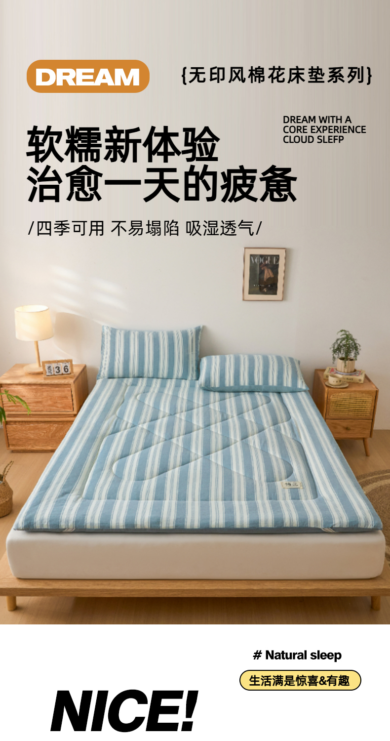 • 91家纺网 家纺一手货源 找家纺 爱屋及屋 2025新款无印风四季款棉花床垫 左岸蓝