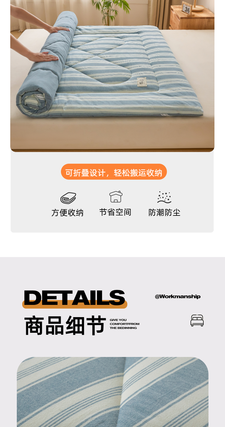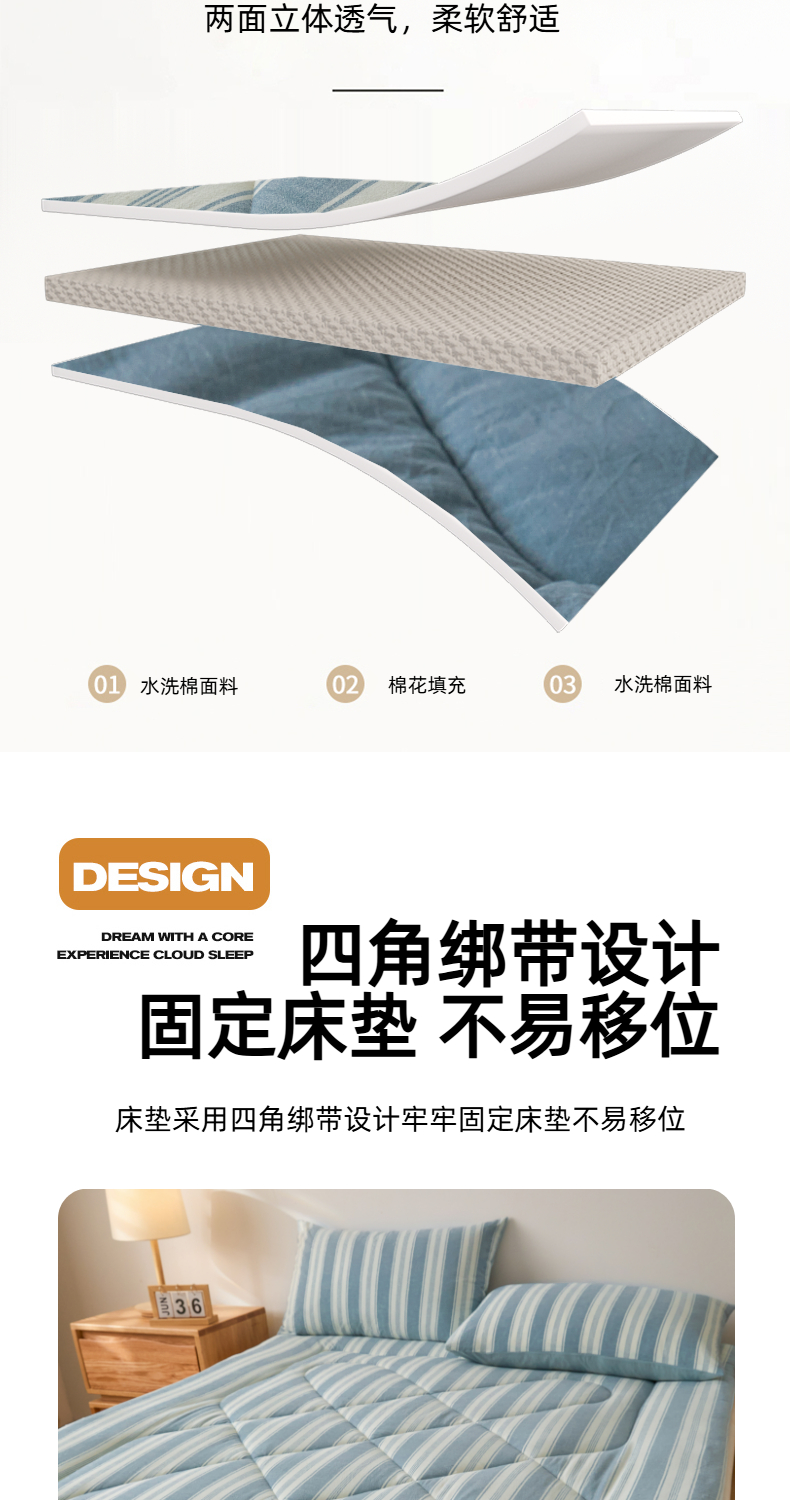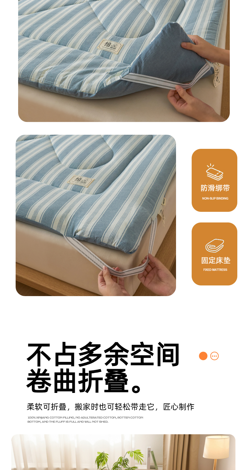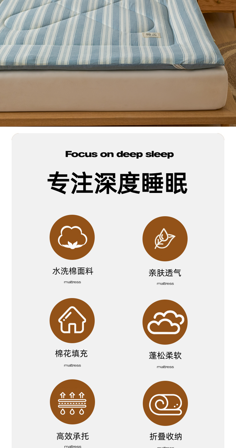 • 91家纺网 家纺一手货源 找家纺 爱屋及屋 2025新款无印风四季款棉花床垫 左岸蓝